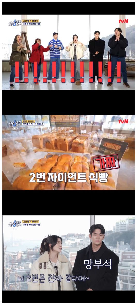 [OSEN=오세진기자]‘식스센스:시티투어’이선빈이실패에처절하게울부짖은가운데,제작진의가짜를위한투혼이밝혀졌다.27일방영한tvN‘식스센스:시티투어’에서는부산투어가시작됐다.가짜를찾아나선이들은게스트이선빈,강태오와함께하며의견을나누었다.두번째가게인빵집은부산로컬빵집으로,무려40여년세월을간직하고있는곳이었다.올라임레전드영원한조선의4번타자이대호까지광고모델로나선해당빵을보자이선빈은“이대호선배님한테전화한번해보면되는거아니냐”라며사실확인에나서고자했다.셰프는“저희가부산향토기업이다.그리고부산하면‘롯데자이언츠’아니냐.그래서거대한빵을만들게됐다”라며“부산을대표하는메뉴를만들고싶었고,부산의특산품5가지를이용해만들고싶었다.기장다시마,갈치속젓,부산명란과김,대저토마토와치즈,연어와기장쪽파,부산언양광안리불고기를넣었다.재료가많아서수작업이다”라고말했다.출연자들은1번이순신장군콘셉트의한식당,3번해물동굴식당의오묘한인테리어등을의심하며결국3번식당을가짜로골랐다.그러나정답은2번이었고,전통시장에서직접특산품5가지를구해자이언츠식빵을밤낮으로구현한셰프는“이상한아이디어를낸건처음이이었다”라고말했다.또한제작진의친인척,특히작가의시어머니까지고객으로등장했다는사실이알려져이선빈을절규하게했다.한편송은이는“이선빈은그거하면좋겠다.‘그가생각나는밤’이런글귀말이다”라며이선빈이벌칙에걸리길바랐다.미미는“헐,선배님그런거쓰면기사뜨신다고요”라고말했고,벌칙은다행스럽게도미미가걸려이선빈은이광수나감성글귀를써야하는벌칙에서피해갈수있었다./[email protected][사진]tvN‘식스센스:시티투어’Copyright©OSEN.무단전재및재배포금지.