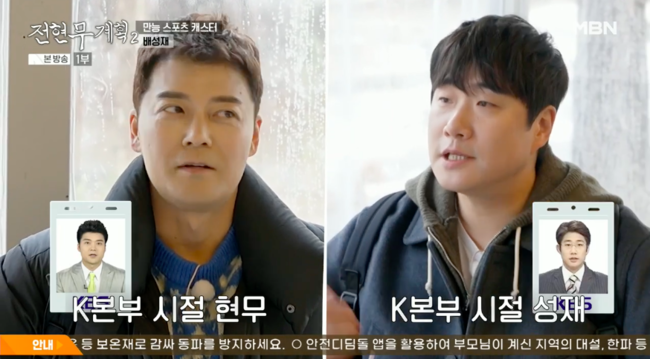 [OSEN=박하영기자]‘전현무계획2’전현무와배성재가KBS선후배였다.7일방송된MBN‘전현무계획2’에서는‘방송국맛집특집’이펼쳐지는가운데게스트로배성재가출연했다.전현무는“저랑비슷한연배에굉장히방송경력이화려한분이있다.제가KBS를상징한다면이분은다른걸상징한다”라고이날함께할먹친구에대한힌트를줬다.먹친구의정체는바로배성재였다.전현무와배성재는서로를향해“SBS의얼굴아니냐”,“KBS의얼굴이었다가이젠전국민의얼굴”이라고덕담을주고받았다.그런가운데전현무는배성재보다나이가한살많다고밝혔다.그는“내가한살위인데KBS는이쪽이한기수위다”라고말했다.배성재도“내가선배고형이후배다.KBS에있다가빨리SBS로이직을했다”라고덧붙여놀라움을안겼다.또배성재는“그때제가먼저들어가서지역국에서일하고있을때소문이들렸다.1년후배가들어왔는데골때리는후배가들어왔다.신입인데부장님같은사람이들어왔다.서기철선배님이상을받았는데꽃다발을들고나가서갑자기어깨동무하더라”라고폭로해웃음을자아냈다.이에전현무는“내가미쳤나”라고했고,배성재는“그때시험을다시봐서SBS로다시이직했다”라며전현무입사로“여긴지옥이됐나보다했다”라고너스레를떨었다./mint1023/@osen.co.kr[사진]‘전현무계획2’방송화면캡처Copyright©OSEN.무단전재및재배포금지.