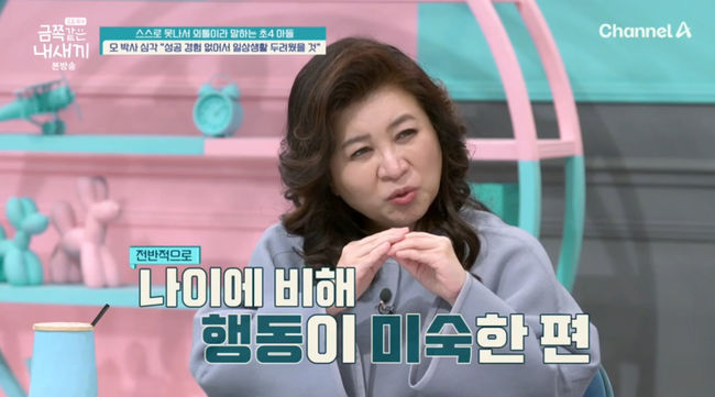 [TV리포트=남금주기자]금쪽이엄마가친정엄마의잔소리에발끈했다.7일방송된채널A'요즘육아-금쪽같은내새끼'에서는두얼굴의금쪽이가등장했다.이날두얼굴의초4금쪽이가등장했다.모든걸자책하며친구들앞에선한없이작아지는금쪽이였지만,자신보다어린동생들앞에선폭력성을드러냈다.학교에서만난동생이마음에안든다며욕설을내뱉고,핸드폰에벽돌을올려놨다.분이안풀렸는지그행동을반복하기도.심지어금쪽이는선생님에게동생이자신의핸드폰을깨뜨렸다고거짓말을했다.또래보다체구가작은금쪽이는젓가락질에도서툴렀다.결국포크처럼젓가락을쓴금쪽이.금쪽이를불안하게바라본엄마는"촬영전에젓가락질하다가옷에김치를떨어뜨렸다.울고불고화를내고난리가났다.그런일이또일어날까봐그냥포크를주게된다"고밝혔다.오은영은"전반적으로나이에비해미숙한것같다.아이수준을정해서성공적인경험을하게도와줘야하는데,그걸안하는것같다.발달에필요한다양한자극을안주는것같다"며금쪽이가힘들어한단이유로공부를줄이거나,포크를허용하는걸언급했다.이어오은영은"완벽하지않아도격려해주고,재도전할기회를줘야하는데,그냥포크를줘버린다.편안한상태에마냥머무르게하는것같다.이건아이를위한거냐,엄마마음이편한거냐"고밝혔다.그런가운데금쪽이는휴대폰을가지고오랜시간놀았지만,엄마는이를제지하지않았다.이어외할머니가오자아이들은신났다.아빠퇴근도반기는아이들.아빠는퇴근후금쪽이동생목욕을시키고,늦은저녁식사를차려먹었다.아내저녁까지챙기는아빠.하지만엄마는늦은시간까지핸드폰을봤고,이에홍현희는"새로운금쪽이나왔다"고말하기도.식당에간엄마는금쪽이젓가락을치웠다.그러나금쪽이는"저도다컸는데젓가락을써야죠"라며먼저젓가락을찾았다.외할머니는금쪽이아빠의훈육법을아쉬워하며"금쪽이에게지나칠때가많다.둘째랑놓고보면편애하는게보인다"고했고,금쪽이엄마에겐"너도일하고온사람밥좀챙겨주고.나도힘들다.사위가다하지않냐"고지적했다.이에금쪽이엄마는"결혼초반에챙겨줬잖아.내가얼마나애들더케어해야하냐"고발끈했고,외할머니는걱정에눈물을보이고말았다.스튜디오에서엄마는"금쪽이를편하게해주려고맞춰준건데,오히려안좋단걸깨달았다.많이노력해야할것같다"고밝혔다.인터뷰에서"외롭다"고털어놓은금쪽이는친한친구질문에한참고민하다"딱히없는것같다"고했다.친구가없는걸자신의탓으로돌리는금쪽이는"내가잘하는게없어서속상하고서러워"라고속마음을전했다.금쪽이아빠,엄마는"부족한부분을많이못채워준것같다"고눈물을보였다.이후금쪽이는가족과함께자신감을키우는연습을했다.남금주기자[email protected]/사진=채널A'금쪽같은내새끼'Copyright©TV리포트.무단전재및재배포금지