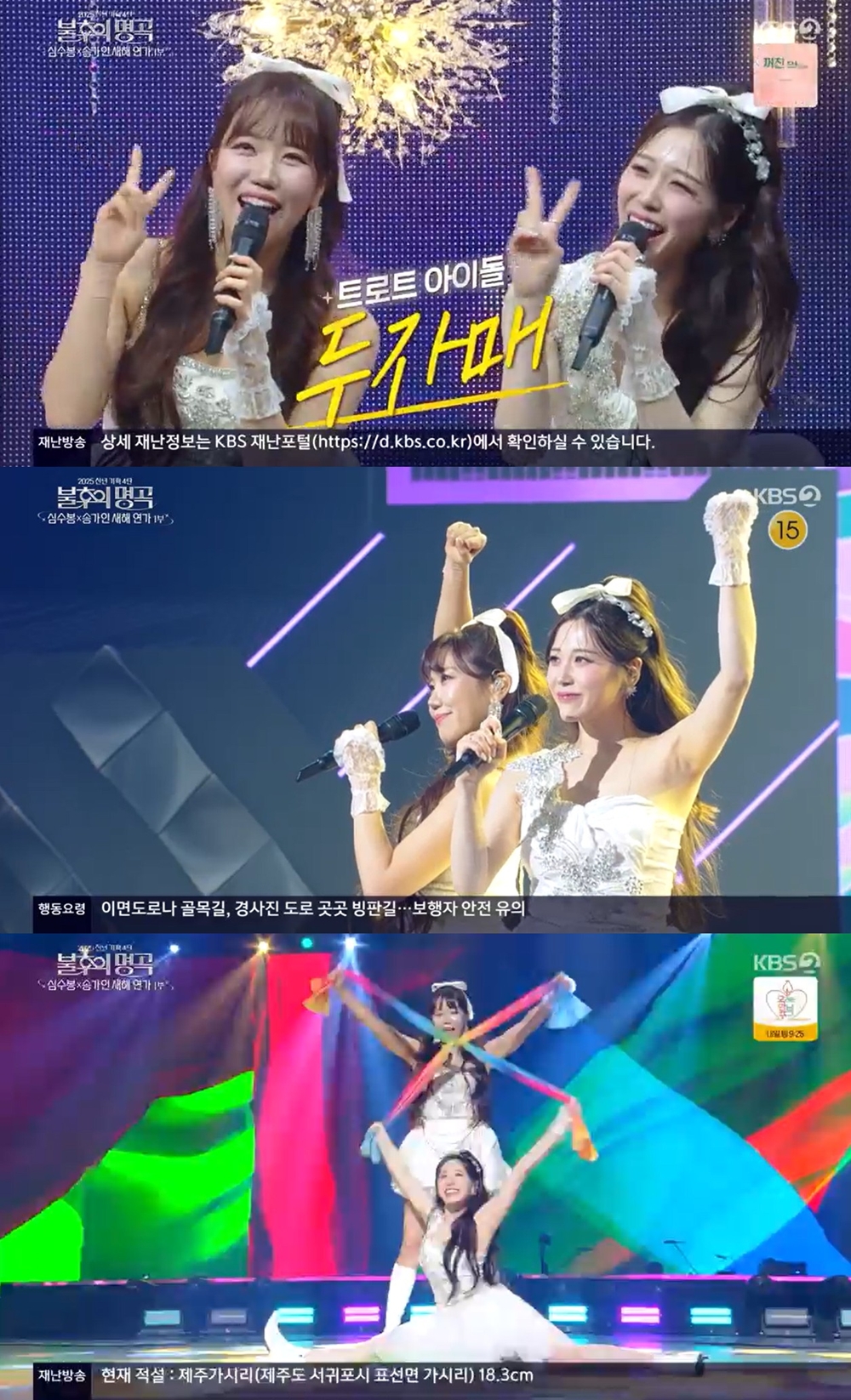 가수김희진이송가인과의남다른인연을자랑했다.iMBC연예뉴스사진두자매는8일방송된KBS2‘불후의명곡’심수봉X송가인새해연가특집에출연,‘풍악을울려라’무대로현장분위기를폭발시켰다.이날두자매는첫소절부터터질듯한에너지와화려한퍼포먼스를선보이며이목을집중시켰다.멤버김희진의농익은목소리와윤서령의시원하고깜짝한목소리가만나환상의하모니를완성했다.또한두자매는역동적인퍼포먼스에도흔들리지않는라이브실력을선보인것은물론,천을이용한화려한안무까지보여주는등관객들의뜨거운반응을이끌었다.특히김희진은관객들에게떼창까지유도하는가하면,윤서령은“얼쑤”라는추임새로분위기를더욱고조시키는등완벽한호흡을보여줬다.무대끝에는두사람의파워풀한고음까지더해져전율을선사하기도했다.윤서령은“심수봉선생님이롤모델이다.눈도못마주치겠다”라며감격했다.김희진은“데뷔전코러스가수출신이다.송가인선배님무명시절에제가코러스를했었다”라며남다른인연을자랑하기도했다.한편,두자매는TVCHOSUN‘미스트롯1’TOP12출신김희진과‘미스트롯3’TOP10출신윤서령이결성한트롯듀엣그룹이다.각종방송과라디오,축제에서활발히활동중인만큼,앞으로행보에더욱기대가모인다.iMBC연예김혜영|사진출처KBSCopyright©MBC연예.무단전재및재배포,AI학습금지.