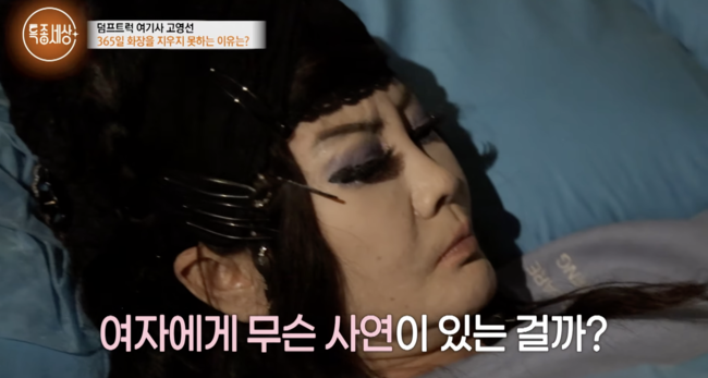 [OSEN=최이정기자]365일화장을안지우는여성트럭기사의사연이화제다.6일방송된MBN밀착다큐멘터리'특종세상'677회에서는28년차덤프트럭기사고영선씨의사연이공개됐다.고영선씨는짙은스모키화장과독특한업스타일헤어로눈길을사로잡았다.이같은스타일에대해고씨는"기운이없다.이러지않으면"이라고설명했다.고씨의남편역시덤프트럭기사로일하고있었고두사람은잉꼬부부면모를자랑했다.고씨의남편은아내의외모에대해"차차이렇게됐다.머리가자꾸올라가더라.시기는오래됐다.맨얼굴보기힘들다"라며"개성아니냐,하고싶은대로"라며웃어보였다."현장에가면사람들이다겁나게보고접근을안한다차갑게느껴져가지고"라고덧붙였다.고씨는화장도지우지않고그대로자는생활을하고있었다.이렇듯고씨가수십년간화장한채로잠자리에들며남편에게도맨얼굴을안보여주는이유는무엇일까.고씨는"아무래도흉터때문이다.아버지실수로어릴때턱한쪽에흉터가생겼는데화상같이피부가많이파였다.사람들이피부병이라고피해다녀서너무충격받았다.이렇게살아야되나싶었다.바깥에나가고싶은마음도없고모든게싫었다"라고아픈상처를털어놨다.하지만이흉터를화장으로가릴수있게되면서모든게달라졌다고.고씨는"화장하고나서는180도바뀌었다.뭐든지할수있겠더라"며달라진인생에대해말했다.더불어고씨는밀리터리,점프슈트등남성스타일을주로추구하는모습이었는데이에대해"터프하고전사처럼보이려고"라고설명했다.헤어스타일에대해서는"이제는내가얼굴흉터가없는줄안다.머리로시선이가서.특이하니까"라고말했다.이같은배경에는역시아버지의영향이있었다.그는"아버지가고지식하셨다.여자는여자남자는남자라고.군인이셨는데여자는예쁘게입고예쁘게해야한다고강조하셨다"라며이런아버지에게서벗어나고싶어엇나갔던과거도회상했다.결국뒤늦게아버지의사랑을알게됐다고덧붙였다./[email protected][사진]방송캡처Copyright©OSEN.무단전재및재배포금지.