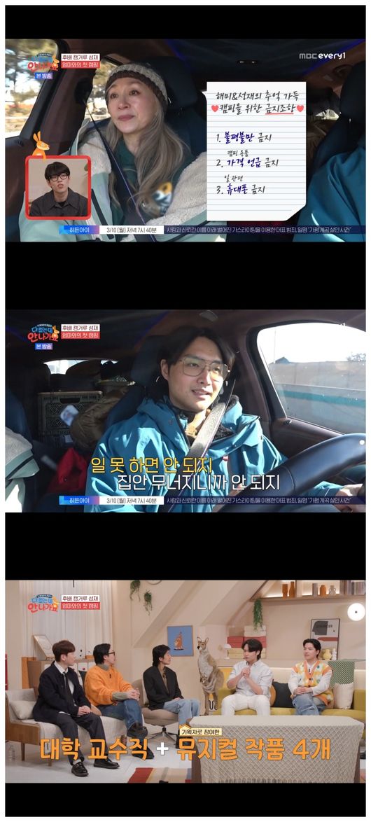 [OSEN=오세진기자]‘다컸는데안나가요’배우박해미가아들황성재에게독립을응원했다.8일방영한MBCevery1MBN‘다컸는데안나가요’에서는아버지어머니를위해새시교체대신모헤어교체를선언한지조와엄마박해미와의다정한시간을위해캠핑을떠나는황성재의모습이그려졌다.지조는“아빠가거실이주활동무대다.그런데외풍이좀심한거같더라”라면서집안이곳저곳을살폈다.부모님은"새시교체하는거냐"라고물었으나,지조는“새시를바꾸기엔저희에게는너무부담스럽다.그리고아버지가저희가장아니냐.제일잘버시잖느냐”라며애교를부렸다.창틀의틈새를차단해단열과방음등의효과를내는모헤어는10년주기로갈아줘야한다.지조는이점을공략했다.지조는“새시를교체하면좋은데,가격이비싸다.모헤어를교체해서얻을수있는이득이있다.철물점에서2~3만원이면산다”라면서“열손실도줄이고부모님도좀따뜻하게지내면좋겠다.최소금액으로최대효과를내려면모헤어교체다”라고말했다.지조가나서고,아버지가적극주도하면서모헤어교체는완료되었다.지조는“부모님을위해서따뜻하고자시작한일인데,부모님이좋아하시니덩달아행복해졌다”라며흐뭇해했다.그러나부모님은“새시교체하는게훨씬낫죠”,“요새좋은새시많이나온다”라며속마음을드러내웃음을안겼다.황성재는어머니박해미와캠핑을떠났다.첫캠핑이었다.박해미는“저는캠핑에대한궁극적인환상이있었다.내가사랑한사람과하는꿈같은환상이있었는데,오늘같은날씨는나가면안된다”라며체감온도영하20도인이날씨에떠나는캠핑을부정적으로받아들였다.극악의날씨는텐트치는것도힘들었다.하하는“부모님이랑여행갔을때저런말절대금지다.돈아깝다,왜줄서서먹냐,이런말절대금지다”라며박해미의불만에대해말했다.이에황성재는“오늘대신‘이딴거왜하냐’이런말금지다”라면서“이걸또샀냐,얼마에샀냐,이런말금지다”,“그리고차에서내린순간부터웬만하면핸드폰보지말아라”라며박해미에게쐐기를박았다.그러나박해미는아랑곳하지않았다.그는텐트에거금을쓴황성재의멱살을잡고뺨을치기까지했다.박해미는“너이제캠핑의키읔만관련된제품더이상사기만해봐라”,“다른데다열정을쏟지그러냐.난도무지마음에들지않는다”라며투덜거렸다.황성재는극악의날씨를견뎌주는박해미를위해캠핑요리를시작했다.삼겹살에라면까지,완벽한환상적인궁합의요리가공개되자박해미는흥이났다.황성재는박해미에게자신에대한이야기를꺼냈다.황성재는“엄마가나한테말하는방식이날급하게한다.형왔을때도실력이어중이떠중이다,말하는데나도인정한다.그런데엄마가예방접종식으로말해주는게난자기방어로두렵다”라고말했다.이에박해미는“오늘이렇게하는걸보면서,캥거루가아니라독립할준비가됐다고생각한다.아쉽지만언젠가아들을떠나보내야할거같다”라며황성재를존중하는모습을보였다./[email protected][사진]MBCevery1MBN‘다컸는데안나가요’Copyright©OSEN.무단전재및재배포금지.