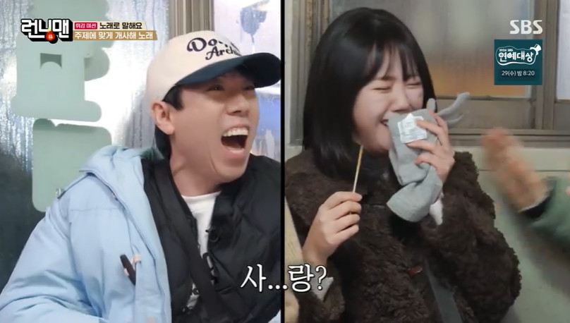 SBS예능‘런닝맨’‘런닝맨’양세찬이얼떨결에지예은에사랑을고백했다.26일방송된SBS예능‘런닝맨’에는고물가시대속진정한갓성비를찾는‘복스러운갓성비3탄’으로꾸며졌다.이날양세찬은식사중지예은과장난을치며,지예은을향해노래를불렀다.이때양세찬은개사를시도하다무심결에‘사랑해’라고내뱉었다.양세찬은얼떨결에나온말이라며수습에나섰지만,지석진은“얼떨결에나오는게진심이다.세찬이가(지예은을향한마음이)진심인것같다”고거들었다.SBS예능‘런닝맨’이에지예은불쾌함을표하며“아니다.방송이다”라고말했다.양세찬역시“내가(개그욕심에)급했다”며민망한듯웃었다.하지만동생의실수를놓칠리없는하하는“지예은사랑해”라고말하며양세찬을따라했다.김종국역시지예은이걱정됐는지“너희이러다사귀지마라”라고조언해웃음을안겼다.장정윤온라인기자[email protected]©스포츠경향.무단전재및재배포금지.