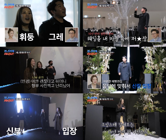 채리나♥박용근부부가든든한응원군인디바멤버들과함께예식장투어에나선다3일방송될TVCHOSUN‘조선의사랑꾼’에서는채리나부부와디바멤버들이지니가리스트업한수많은예식장중한곳으로찾아간다.식장에다다르자부부의얼굴이확펴지며감탄하는기색이드러났고,VCR을지켜보던김국진은“바라보는눈빛이다르다”며재빠르게표정을캐치했다.채리나♥박용근부부가든든한응원군인디바멤버들과함께예식장투어에나선다.사진=TV조선제공흔치않은돔형식예식장에오는길에시큰둥했던박용근조차홀로여기저기사진을찍으며설레어했다.박용근의반전모습에민경은“아까는괜찮다고하더니형부사진찍고난리났다”며웃음을참지못했다.민경의주도로마침내박용근이예식장한가운데에서‘버진로드’를홀로걸었다.그는연습이지만당당한걸음걸이로허공의하객(?)들에게인사를건넸고,버진로드의중간까지다다르자채리나를향해두팔을벌렸다.이에채리나는‘전설의센언니(?)’답게박력있는몸짓으로커튼을헤치고나왔다.그리고부케를든것처럼두손을꼭모으고남편박용근에게향했는데,결혼10년만의첫버진로드워킹이감동을자아냈다.채리나♥박용근부부의‘10년늦게올리는결혼식’에대한설렘과감동이담길극사실주의다큐예능TVCHOSUN‘조선의사랑꾼’은3월3일오후10시에방송된다.[진주희MK스포츠기자][ⓒMK스포츠,무단전재및재배포금지]Copyright©MK스포츠.무단전재및재배포금지.