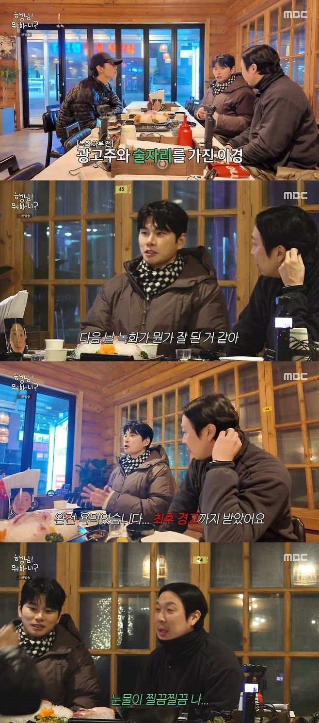 이이경·하하[서울=뉴시스]최지윤기자=배우이이경이유재석에게쌍욕을먹었다고고백했다.이이경은30일MBCTV설특집'행님뭐하니?'에서"(유재석)형은진짜나를사람만들어주고있다"며"녹화전날광고주와술자리를가졌는데다음날녹화가잘되더라.그때부터'술먹고가면잘풀린다'는이상한루틴이생겼다.근데재석형은다알더라.농담이아니라전화로쌍욕먹었다.최후경고까지받았다"고털어놨다.모델주우재는"그날기억난다"며"재석형이현장에서도몇번뭐라했다.형이화를누르면서말했다"고설명했다.이이경은"그때완전번개맞았다.잘되기위해한행동인데형은다알고있었던거다.'술에의존하지말라'고따끔하게충고해줬다"며고마워했다.주우재는"넌괜찮다.재석형말듣고고치면된다.훨씬개차반으로하는분이있다"며래퍼하하를쳐다봤다.하하는민망한듯웃었다."'무한도전'초창기였다.(당시녹화장근처에살아서)1층에서걸으면30초안에도착한다"면서도"늦잠자서1시간을늦었다.뛰어서내려왔더니출연진과스태프들이오프닝을안하고기다리고있더라.갑자기재석형이'하동훈미쳤어?너이게웃겨?그렇게만만해?여기있는사람들안보여?다목숨걸고하는사람들이야'라고하더라"고회상했다."유재석이화를내는데얼마나무섭냐.나한테형은강렬한게있다.거기서주눅들면안된다는생각이들었다.'다시는안그러겠다'고했더니'오늘큰웃음3번,중간웃음10번,작은웃음30번웃겨'라고해서그렇게웃겼다.이후목요일(녹화날)전날술을안마신다.진짜마실일이있으면문자를보낸다.결혼하고애가3명인데도아직도그임팩트가세다."주우재는"재석형이그러는게상상이안된다"며놀랐고,하하는"얼마나무서운줄아냐.눈물이찔끔찔끔난다"고했다.☞공감언론뉴시스[email protected]©뉴시스.무단전재및재배포금지.