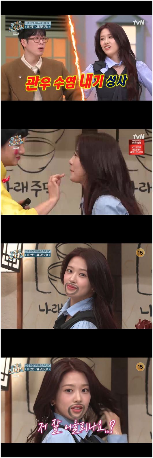 [OSEN=오세진기자]‘놀라운토요일'아이브안유진이수염분장내기에서졌다.8일방영된tvN예능‘놀라운토요일’(이하'놀토')에서는아이브안유진이1라운드게임에서자신감을보였다.받쓰판을크게메우진못했으나,안유진은“저는다른분들이랑비슷하게들었는데,‘에피소드’란단어를들었다.이정도면준수하지않냐”라며기세좋은모습을보였다.1라운드첫번째정답기회는안유진에게돌아갔다.안유진은"멋대로가맞는거같다"라며자신만만해했다.이에박나래는"수염분장가겠냐"라고제안했고,안유진은고민했지만결국승낙했다.그러나피오는'멍때려'가맞다고했다.피오까지가세한수염내기에안유진은"선배님도하실거냐"라고제안했다.그러나정답은'멍때려'로,피오가정답을맞혔다.안유진은박나래가손수그려준수염분장을한채애써자신감있는모습을보이려고했으나종내는"싫어!"라고외쳤다./[email protected][사진]tvN예능‘놀라운토요일’방송화면캡처Copyright©OSEN.무단전재및재배포금지.