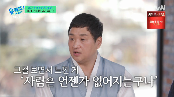 [서울=뉴시스]손정빈기자=배우구성환이초등학교2학년때어머니를떠나보내고행복에대해생각하게됐다고했다.구성환은5일방송된tvN예능프로그램'유퀴즈온더블록'에나와인생을즐기면서살아야겠다고다짐하게된계기에대해말했다.구성환은"처음말한다"며"초등학교2학년때어머니가위암으로돌아가셨다"고했다.이어"너무이른이별을맞이했다.어머니께서4년간병실에계셨다.모든계절을병실에계셨는데어린나이에그게충격적이었다"고덧붙였다.그러면서"아프셔서호스를차고계셨다.남들은즐길때왜즐기지못하시는건지9살어린나이에생각하게됐다"고했다.구성환은"어머니와이별하면서느낀게사람은언젠가없어진다는것이었다"고했다.또"어린나이에죽음을보다보니충격을받았고,하루하루를즐겁게살았으면좋겠다는생각을하게됐다.행복에대해그때많이생각했다"고도말했다.구성환은"내가없으면어떡하지생각하다가그때부터공부도안했고하고싶었던여행다니고,하고싶은걸다하며살았다"고말했다.그러면서그는어릴때부터좋아했던것들에관해얘기했다.구성환은"초등학교때주말에축구끝나고집에오다보면한강에햇빛이비치는걸봤다.그걸윤슬이라고하더라.어린나이에윤슬이왜그렇게좋았는지모르겠다.이러한사소한게내게울림을준다"고말했다.☞공감언론뉴시스[email protected]©뉴시스.무단전재및재배포금지.