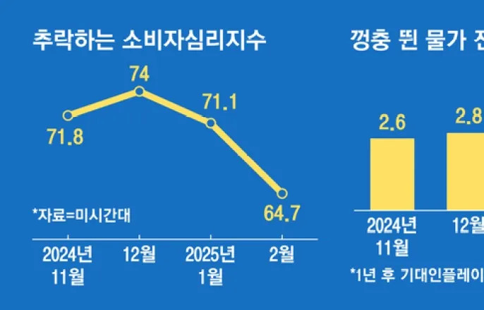 이달소비자심리지수64.715개월만에가장낮은수준기대인플레이션은되레올라버크셔,역대최대현금보유월가“美증시단기조정”전망도널드트럼프미국대통령취임한달째를맞아미국경제의이상신호가곳곳에서감지되고있다.공격적관세정책등으로불확실성이확대되면서소비심리는악화되고,뉴욕증시는올해들어최대낙폭을기록하는경기하강조짐이나타났다.인플레이션우려까지더해져이른바‘스태그플레이션(물가상승속경기침체)’이거론되기시작했다.미국경제경고등은소비심리악화에서켜졌다.지난20일(현지시간)미국최대유통사이자소비의바로미터인월마트의올해실적전망이시장기대에못미친것이신호탄이었다.이날월마트(-6.53%)는물론이고코스트코(-2.61%),타깃(-2.00%)등대형유통주는뉴욕증시에서모두급락했다.이어21일미시간대는이달소비자심리지수를전월대비약10%낮아진64.7로발표했다.이는2023년11월이후15개월만에가장낮은수준이다.시장전망치(67.8)도밑돌았다.소비자뿐만아니라기업의구매심리도위축됐다.이날S&P글로벌은2월서비스구매관리자지수(PMI)가49.7로전달(52.9)보다크게떨어졌다고밝혔다.PMI는50을기준으로높으면경기확장,낮으면위축을뜻하는데이번처럼50을밑돈것은2023년1월이후25개월만에처음이다.민간의지출심리는냉각되지만인플레이션은오히려상승할것으로전망됐다.역시나이날발표된미시간대의1년후기대인플레이션은4.3%를기록해15개월만에가장높았다.이에스테픈아이네스SPI애셋매니지먼트대표는“한때1970년대유물로치부됐던스태그플레이션리스크가다시조용히나타나기시작했다”고시장분위기를전했다.월가에서는단기적으로증시조정은불가피하다는전망이나온다.특히‘투자의달인’워런버핏이이끄는버크셔해서웨이의현금보유액이역대최대수준으로늘어난것으로나타나자시장에서는침체를예상한전략이아니냐고분석하고있다.22일버크셔가발표한작년4분기재무보고서에따르면지난해말현금보유액은3342억달러(약480조7467억원)로역대최고수준을기록했다.이는작년3분기말3252억달러에서90억달러더늘어난것이고,2022년3분기부터10개분기연속증가다.반면버크셔는9개분기연속주식을순매도했다.지난해1340억달러어치의주식을매각했다.버핏은이날주주들에게보내는연례서한에서현금을과도하게보유하고있다는우려에대해언급했지만구체적인이유는밝히지않았다.그는“회사자금의대부분이여전히공개및비공개주식에투자돼있고이방침은변하지않을것”이라며“현금성자산을우량기업의소유보다선호하는일은없을것”이라고전했다.Copyright©매일경제&mk.co.kr.무단전재,재배포및AI학습이용금지