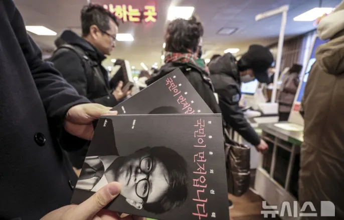 3월2일'바다는비에젖지않는다'관람예정5일엔북콘서트…윤탄핵등현안입장밝힐듯[서울=뉴시스]정병혁기자=한동훈국민의힘전대표의저서'한동훈의선택-국민이먼저입니다'발간일인26일오전서울종로구교보문고에서지지자와시민들이책을구매하고있다[email protected][서울=뉴시스]최영서기자=한동훈전국민의힘대표가내달제2연평해전을다룬공연을관람하고자신이낸책북콘서트를열면서본격적으로활동을재개한다.27일한전대표측에따르면한전대표는오는3월2일오후1시서울의한극장에서'바다는비에젖지않는다'라는제목의연극을관람할계획이다.한전대표가공개석상에모습을드러내는건당대표직을사퇴한지난해12월16일이후약두달반만이다.한전대표는제2연평해전에서전사한고(故)한상국상사의아내김한나씨와꾸준히인연을이어온것으로알려졌다.한전대표는총선패배후잠행중이던때에도한상사를추모하는내용의동화책제작프로젝트를소개한바있다.지난7.23전당대회에선김씨가한전대표캠프후원회장을맡기도했다.이번공연관람은김씨가한전대표에게먼저제안해성사된것으로전해졌다.같은달5일엔서울마포구의한청년문화공간에서'한동훈의선택,국민이먼저입니다'북콘서트를연다.전날한전대표는12.3비상계엄사태와윤석열대통령탄핵정국을기록한'국민이먼저입니다'라는제목의책을출간했다.한전대표는비상계엄선포직후부터윤대통령을만나자진하야를설득했으나불발된일등을상세하게기술하며탄핵에찬성할수밖에없었던이유를설명했다.그러면서도윤대통령과보수지지자들을향한안타까움과미안한마음을함께담았다.윤대통령탄핵이인용될경우열리는조기대선에출마할가능성도내비쳤다.그는"(당대표를사퇴할당시)'저는포기하지않는다'는말을하고떠났다.그리고이제나는그말을지키려고한다"고적었다.☞공감언론뉴시스[email protected]©뉴시스.무단전재및재배포금지.