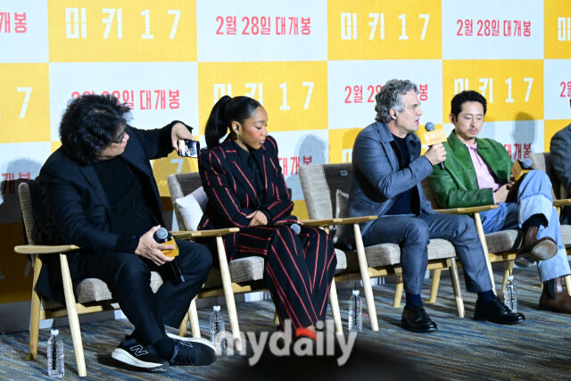 [마이데일리=곽경훈기자]20일오전서울코엑스메가박스에서진행된'미키17'기자간담회에서봉준호감독이마크러팔로를인터뷰장면을동영상으로찍고있다.봉준호감독은코믹한연기로유명한마크러팔로에게악역을맡긴이유에대해"마크러팔로도처음엔되게당황했다.'나에게이런모습이있어?'라고묻더라.'형님배우시지않냐'고했더니'맞아...난프로배우야'라며마음을다잡더라.이상황만봐도되게귀여운분이다.실제역사속독재자들이위험하지만매력이있다.그래서사람들을휘어잡고골수지지자들도있는거다"고말했다.'미키17'은위험한일에투입되는소모품(익스펜더블)으로,죽으면다시프린트되는미키가17번째죽음의위기를겪던중,그가죽은줄알고'미키18'이프린트되면서벌어지는예측불허의이야기를그리는영화다.Copyright©마이데일리.무단전재및재배포금지.