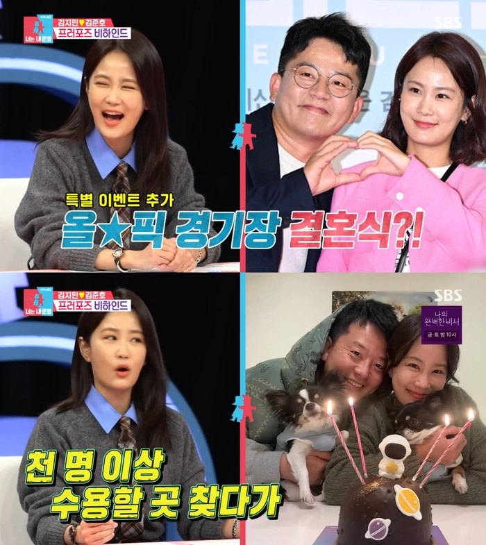 ‘동상이몽2’.사진ISBS‘동상이몽2-너는내운명’방송캡처코미디언김지민이올림픽주경기장결혼식설을언급했다.6일방송된SBS‘동상이몽2-너는내운명’에서는김지민이스페셜MC로함께하는모습이그려졌다.이날김구라는김지민에게“결혼식을올림픽경기장에서한다는말이있더라.재혼을이렇게성대하게하려는사람은처음봤다”고말했다.김지민은“우리가예상하객을합쳐보니까1000명이상수용할수있는곳이없더라”라고너스레를떨었다.이를들은유민상은“이렇게동종업계사람들이만나서결혼하면축의금이양쪽으로나간다.곤란한상황좀안만들었으면좋겠다”고말했다.이어“내가20년동안낸경조사비가1억원가까이될것”이라고하소연해웃음을자아냈다.한편‘동상이몽2-너는내운명’은매주월요일오후10시10분방송된다.[이세빈스타투데이객원기자]Copyright©스타투데이.무단전재,재배포및AI학습이용금지