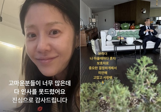 (엑스포츠뉴스김예나기자)배우고현정이아픈자신의곁을지켜준동생에게고마움을공개적으로표현해눈길을끌었다.고현정은6일퇴원소식을전하면서여러장의근황사진을업로드했다.고현정은"걱정끼쳐죄송하다.저는많이회복했다.이제식사도잘하고가까운지인들은만나기도한다"고근황을먼저알렸다.이어"저도놀랄만큼아팠는데큰수술까지무사히끝내고나니정신이든다.조심하고잘살피겠다"고다짐했다.공개된사진속고현정은환하게미소지으며카메라를바라보는모습.그간아픈탓에이전보다더살이빠진얼굴을보여안쓰러움을자아냈다.고현정은"오늘제모습이다.사랑해요.여러분.응원과걱정진심으로고개숙여감사드립니다"라고인사를남겼다.고현정은이후개인채널스토리를통해병원생활을기록한사진을대방출했다.병원침대에누워있는모습부터퇴원선물로받은꽃다발까지그간의일상을엿볼수있다.그가운데,남동생사진을올린고현정은"브라더나아플때마다혼자보호자로중요한결정하게해서미안해고맙고사랑해"라고공개적으로마음을표현하며훈훈함을자아냈다.아플때자신의곁을지켜주는동생의애틋한마음이전해지면서누리꾼들에게도감동으로다가오고있다.사진=고현정개인채널,엑스포츠뉴스DB김예나기자[email protected]©엑스포츠뉴스.무단전재및재배포금지.