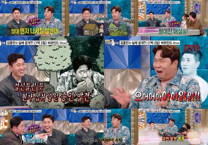 [서울=뉴시스]MBCTV'라디오스타'가5일오후10시30분방송된다.(사진=MBCTV'라디오스타'제공)[email protected]*재판매및DB금지[서울=뉴시스]서다희인턴기자=개그맨문세윤이혼성그룹'코요태'멤버김종민의'먹성'에대해폭로한다.5일오후10시30분방송되는MBCTV토크예능물'라디오스타'는'구관이명관'특집으로꾸며진다.문세윤,김종민과개그우먼박나래,프로듀서코드쿤스트가게스트로출연한다.문세윤은이날"김종민형이'1박2일'에서18년동안자리를지켜온이유가있어요"라고운을뗐다.문세윤과함께KBS2TV최장수예능'1박2일'에출연중인김종민은이프로그램최장기간출연자다.그는김종민이절대먼저나서지않지만,유일하게나설때가있다고밝혔다.바로밥먹을때라고말한다.문세윤은김종민이먹을거앞에서"나줘!나줘!"라고한다며먹는것에진심인모습을보인다고짚었다.그는과거'1박2일'에배우김영옥이나왔을때겪었던김종민의충격적인에피소드도폭로한다.문세윤은촬영중휴식시간에김영옥선생님과인사를나누던멤버들사이에서김종민이사라진사실을알아챈다.그를찾아나선문세윤은촬영장뒤편에서수상한산짐승소리를들었다.문세윤이소리를따라다가가보니김종민이걸신들린듯뭔가를허겁지겁먹고있는현장을포착했다고했다.알고보니김종민이옆에있던매실나무에서떨어진매실을주워먹고있었던것이다.문세윤의실감나는재연에스튜디오는웃음바다가된다.김종민은해맑게"시었어요.많이시었어요"라고당시매실의맛을전했다.이와함께김종민이'1박2일'회식비를나서서내는일화도전해졌다.문세윤은"'1박2일'스태프까지약20~30명의회식비를김종민이몇번냈다"면서"'형한테너무한것같다'라는생각에김종민에게반반씩나눠내자고제안했지만김종민이거절했다"고했다.다만문세윤이회식비의절반을김종민에게송금했는데김종민은이를초스피드로수락했다고해웃겼다.☞공감언론뉴시스[email protected]©뉴시스.무단전재및재배포금지.