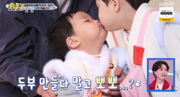 KBS2예능‘슈퍼맨이돌아왔다’펜싱선수김준호의자녀은우·정우가남다른우애로부러움을자아냈다.5일방송된KBS2예능‘슈퍼맨이돌아왔다’(이하‘슈돌’)에는김준호와그의아들은우·정우부자의일상이그려졌다.가두부를만들기위해경기도양주로향했다.오프닝에서2MC최지우,안영미,박수홍은신년계획을이야기했다.이때안영미는“올한해둘째를좀가졌으면한다”고밝혔다.이에최근딸재이를출산한박수홍은“나는생각도못한다.(아내는)재이가날닮아서자기를닮은아이도만나고싶다더라.근데난아내를위해서생각은안하고있다”고이야기했다.KBS2예능‘슈퍼맨이돌아왔다’하지만안영미는“그래도모르는거다.아내가원하면(둘째가생길수도있다)”이라고박수홍을부추겼다.최지우역시“올해겹경사한번만들어보자”고거들었다.“(우리둘다둘째를낳아서)대상한번받아보자”는안영미의말에박수홍은“아기낳으면상주는거냐.KBS에서주는거냐”며흔들리는모습을보였다.이날VCR의주인공은김준호와그의아들은우·정우부자였다.세사람은두부를만들기위해경기도양주로향했다.세사람을두부를만들기전두부에찍어먹는씨간장부터맛을봤다.이때짠맛에당황한김준호와달리은우·정우는양손을간장을퍼먹는귀여운먹방을선보였다.은우·정우의먹방을틈타김준호는“이간장에두부찍어먹을까?”라고물었고,은우는“고!”라고답하며두부만들기에앞장섰다.KBS2예능‘슈퍼맨이돌아왔다’세사람이만들두부는가마솥으로만드는방식이었다.전문가는세사람에게두부의원재료인콩물을젓는일을맡겼다.그러면서콩물은한시라도젓지않으면들러붙는다고이야기했다.이에김준호역시첫째은우에게“정성을다해서해야맛있는음식이만들어지는거야”라고조언했다.이를들은은우는눈에힘을주더니“집중!”을외치며더빠르게콩물을젓기시작했다.KBS2예능‘슈퍼맨이돌아왔다’은우가열심히콩물을젓자,전문가가설명한거품이올라오기시작했다.정우는이모습을침을흘리며바라봤다.이에은우는정우에게“조금만기다려”라고말한뒤“두부야맛있어져라”라고주문을외웠다.이에정우는고마운듯형은우를빤히바라봤고,은우는동생이귀여운듯뽀뽀를하며남다른우애를자랑했다.해당VCR을본안영미는“내가이런것만보면둘째가갖고싶다”며둘의우애를부러워했다.장정윤온라인기자[email protected]©스포츠경향.무단전재및재배포금지.
