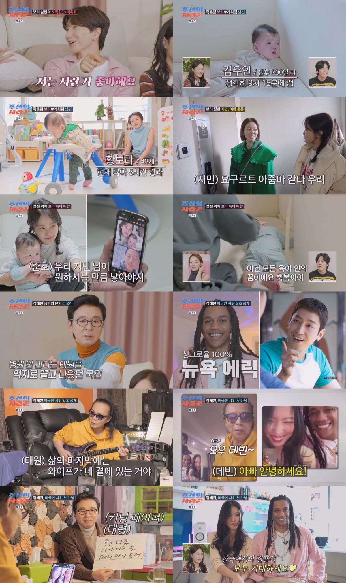 [텐아시아=이민경기자]사진제공=TVCHOSUN‘조선의사랑꾼’TVCHOSUN예능'조선의사랑꾼'에게스트로찾아온'슈퍼주니어'의이특과'사랑꾼즈'MC들이'우인맘'황보라의기적의육아법,그리고'부활'김태원과미국인예비사위데빈의첫영상통화를지켜봤다.설연휴에딱맞는'가족사랑'이야기에힘입어시청률은분당최고5.0%(닐슨코리아,전국기준),전국4.5%로종편동시간대1위자리를지켰다.27일방송된설특집'조선의사랑꾼'에는'슈퍼게스트'이특이찾아왔다.이특은오자마자사랑꾼MC자리를노리며최성국을견제해웃음을자아냈다.그리고힘겨운난임치료끝에얻은황보라의'귀한아들'우인이와의일상을지켜봤다.VCR에서황보라는계획형남편의지독한(?)육아스케줄표를보며투덜거렸다.그러나같은계획형인간인이특은"저도아이를낳으면저럴것같다"며'황보라남편일정표'를탐냈다.이후황보라는"(육아에선)남편이선장이고저는조타수다"라며남편의기적의수면법(?)을공개했다.생후200일인우인이는일정대로정확히9시15분에기상하고낮잠시간에맞춰잠드는놀라운모습을보여줬다.기상과수유,낮잠,이유식시간까지빼곡하게적혀있는일정과남편이미리준비해놓은이유식에이특은"너무좋다...내스타일이다"라며첫눈에반해웃음을선사했다.하지만'슈퍼맘'황보라에게도육아피로가몰려오기시작했다.그때황보라의든든한지원군인'육아베테랑'정이랑과'예비신부'김지민이찾아와황보라에게자유시간을선사했다.두사람이한창육아를하던중,김지민의'예비신랑'김준호에게영상통화가걸려왔다.우인이를사랑스럽게바라보던김준호는"우리도...낳아야지?"라며열정(?)을불태웠다.김지민은"몇명낳을건데?"라며미소로화답했고,김준호는"우리지민님이원하시는만큼낳아야지!"라고대답해예비부부다운핑크빛기류를형성했다.그러나'난소나이27세'인김지민과달리,김준호는얼마전검사에서남성호르몬수치가약70대남성에해당하는2.7로나와충격을선사한바있었다.스튜디오에서이를지켜보던김지민은"생각좀해봐야겠다"며머리를부여잡았다.이어정이랑이희망하는2세의성별에관해물었고,김준호는"지민이닮은딸이좋지"라며'사랑꾼'다운모습으로훈훈함을자아냈다.이후정이랑이"선배님닮은딸낳으면어떡하냐"며농담섞인질문을던지자김준호는"최악이다..."라며몸서리쳐웃음을선사했다.한편,전설적인록밴드'부활'의김태원은딸서현&미국인예비사위와의첫영상통화를공개했다.예비사위와의역사적인첫만남을위해김태원의'오랜절친'김국진이직접김태원의집을방문했다.이후미국까지날아간제작진의열정으로김태원의예비사위가방송에최초로공개됐다.훤칠한모습에MC들이감탄하는가운데,김지민은"(신화의)에릭과닮았다"며'뉴욕에릭'데빈에게호감을표했다.영상통화를준비하는과정에서예비사위데빈과예비장인김태원이서툴지만상대방의언어를연습하는모습은감동을자아냈다.김태원은맹연습한영어로데빈에게딸서현과의첫만남에대해질문했다."첫눈에(운명임을)알았다"는데빈의대답에김태원은"서현이엄마랑아빠도그렇게만났다"며옛추억을소환했다.이후김태원은딸과버진로드를걷는순간을상상하며미국과한국양국에서결혼식을올리자고말했다.이에서현은눈물을흘렸고,그런딸의모습에김태원은"너행복하게살도록아빠가노력할게"라며단단히의지를다졌다.연인의사랑부터가족의사랑까지,세상모든사랑의순간을담아내고있는극사실주의다큐예능TVCHOSUN'조선의사랑꾼'은매주월요일밤10시방송된다.이민경텐아시아기자[email protected]©텐아시아.무단전재및재배포금지.