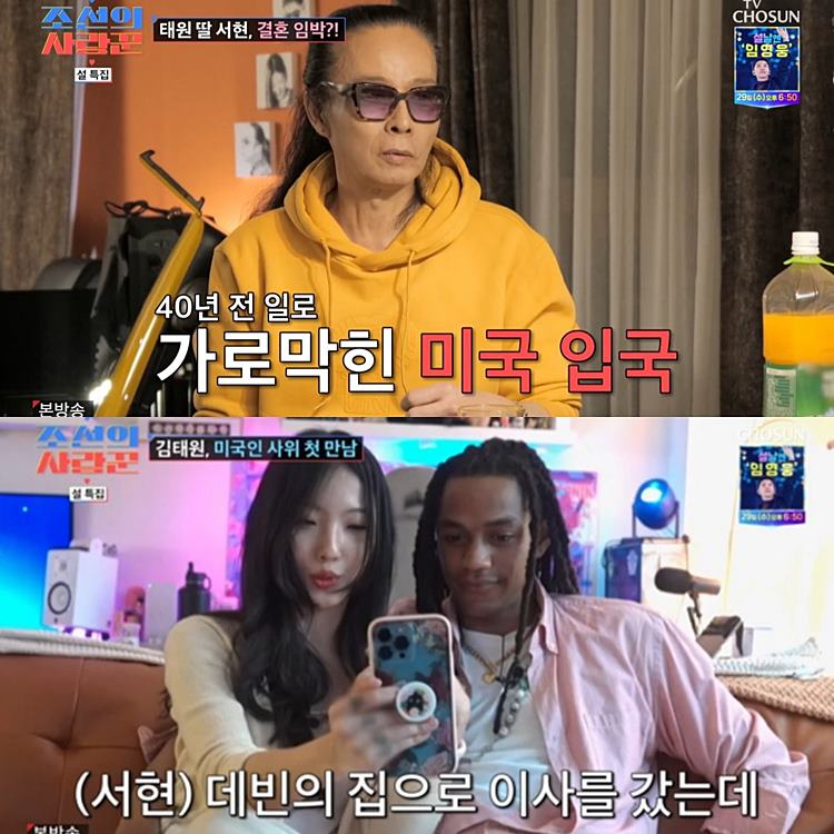 [서울=뉴시스]김태원.(사진=TV조선'조선의사랑꾼'캡처)[email protected]*재판매및DB금지[서울=뉴시스]이재훈기자=그룹사운드'부활'김태원이예비사위를만나러미국에가지못하는이유를털어놨다.27일방송된TV조선'조선의사랑꾼'에서김태원은"결혼할친구를직접봐야하는데,비자를안주는거다"라면서이렇게밝혔다.40년전대마초전과탓에미국입국이가로막힌것이다.김태원은지난1987년과1991년대마초흡입으로입건된적이있다.이후성공적으로연예계에복귀해안정적인활동을이어왔다.이날방송에선미국으로직접가지못하는김태원대신'조선의사랑꾼'일부제작진이김태원사위를만나기위해현지로향했다.이에따라김태원은영상통화로예비사위를만나게됐다.김태원은절친인코미디언김국진과함께딸김서현씨에게예비사위를소개받았다.김태원의미국인사위데빈이이날처음공개된것이다.데빈은김씨와인연에대해"서현이는완벽했는데우리는원래계속친구였다.어느날서현이날찾아와줬고,사랑임을깨달았다"고설명했다.두사람은인터뷰내내꼭붙어있는모습으로달달함을자랑했다.서현은"제가열네살때부터우울증이많이심했다.작년부터많이좋아졌는데다데빈덕분"이라고고마워했다.김태원은"내가미국을가지못하는바람에어긋났지만,(서현과데빈이)늘내마음안에있다"고애틋해했다.☞공감언론뉴시스[email protected]©뉴시스.무단전재및재배포금지.