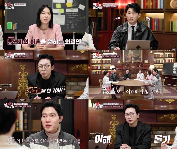 [SBS연예뉴스|강선애기자]'원탁의변호사들'탁재훈이충격적인이혼사건에분노를터뜨렸다.SBSLife'원탁의변호사들'은실제이혼사건을바탕으로한이야기를분석하며해결해나가는이혼전문예능프로그램으로,가수탁재훈이열정넘치는'법률사무소대표'로,가수이지혜,개그맨신규진이'사무장'으로분한다.지난20일방송된'원탁의변호사들'2회에서는반전에반전을더한'이것이막장드라마'사건과'프로페셔널'사건이공개됐다.이날첫의뢰인으로등장한이는남편으로부터전치6주의폭행을당한아내였다.심각한수준의폭행을당한아내를본탁재훈은"어떤이유든폭행은정당화될수없다"며단호한입장을보였지만,남편의폭행이아내의외도로인한것이라고밝혀지며모두를놀라게했다.사연이진행될수록사건은더욱복잡한전개를맞이했다.사실남편의외도가먼저였다는사실과함께이들부부의상간남,상간녀또한부부였다는사각관계가드러나모두를경악케했다.이를본탁재훈은"여기서노래하나듣고가겠습니다"라며김범룡의'바람바람바람'을언급해웃음을자아냈다.아내가이혼을요구하자남편은아내의상간남을소송하겠다고맞서며부부의갈등은극으로치달았다.양측이서로를향해폭로를이어가며첨예하게대립하고있는상황에서탁재훈은"이사건우리가맡아야되나요?"라며난색을표했다.이에조인섭변호사가승소할것이라고강한자신감을보여사건을수임하기로결정했다.두번째의뢰인은6살자녀를가진25세젊은엄마가등장해모두를놀라게했다.이들부부는보육원에서자라어렵게가정을꾸렸지만행복해보였던가정은남편이아내명의로거액의빚을몰래빌리며균열이생겼다.이에아내가이혼을요구하자남편은아내의외도를이유로반대했다.그러나아내는외도가아닌유흥업소에서근무하고있던것이었고,이는남편의제안이었던것으로드러나며스튜디오가한순간에조용해졌다.심지어남편이2차까지허락하며'돈을벌어오라'고했다는사실에탁재훈은"저건인간이아니다"라며질타했다.더욱이이들부부는아이의양육권을서로원치않는다는사실이밝혀져모두를충격에빠트렸다.이인철변호사는"아이가이사실을알게된다면큰상처를받을것"이라며이들의무책임한태도를강하게비판했다.어린나이에아이를낳고살아온아내가사회적지지와보호를받지못한이번사건은남편의상식을벗어난제안뿐만아니라그의뻔뻔한행보에스튜디오를넘어안방극장까지분노를일으켰다.'원탁의변호사들'은강렬한사건과끊임없는반전으로긴장감을불러일으켰다.그속에서탁재훈,이지혜,신규진의솔직한반응은시청자들에게몰입감을안겼다.세사람은각자의시선에서의견을제시하며제3자의시각을흥미롭게전달했다.또한각기다른성격과스타일의변호사들이사건을다각도로분석하는모습은예리하면서도유쾌한재미를더했다.한편'원탁의변호사들'은매주월요일오후8시40분SBSLife와SBSPlus에서방송한다.강선애기자[email protected]©CopyrightⓒSBS.Allrightsreserved.무단전재,재배포및AI학습이용금지