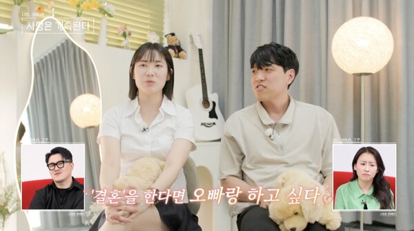 사진=ENA,SBSPlus'나는솔로,그후사랑은계속된다'[스포츠한국신영선기자]'나는솔로'20기광수,영자커플이오는10월결혼한다.ENA,SBSPlus'나는솔로'제작사촌장엔터테인먼트는24일유튜브채널을통해20기광수,영자의영상을공개했다.'나는솔로'를통해현실커플이된20기광수,영자는3월1일양가상견례후오는10월결혼식을올릴예정이라고밝혔다.두사람은"식장을요즘은1년전에는잡아야한다.그게요새트렌드인것같긴한데굳이따라야할필요는없는데따르기로했다"면서신혼집은아직정하지않았다고말했다.광수는"프러포즈는아직안했다.(영자가)연애초기부터안해도된다고얘기는했지만어떤형태로할지는아직시간이있으니까고민하고있다.너무자연스럽게결혼하는페이즈로넘어갔다"고전했다.이어"'나솔사계'촬영하고부터는결혼해야겠다고확실하게마음먹었다.당시에확실하게얘기하지않은이유는만난지100일이라얼마안됐는데감정이좋다고몇개월뒤에도좋을지정확하게몰라서당시에는결혼하고싶다정도의마음이었는데지나고보니까이사람과결혼해야겠다는생각이자연스럽게생겼다"고설명했다.광수,영자는지난해4월부터6월까지방영된'나는솔로'20기에서만나인연을맺었다.방송에서는최종커플이되지않았지만촬영후현실커플이된두사람은지난해6월ENA,SBSPlus'나는솔로,그후사랑은계속된다'에서교제중인근황을전했다.스포츠한국신영선기자[email protected]©스포츠한국.무단전재및재배포금지.
