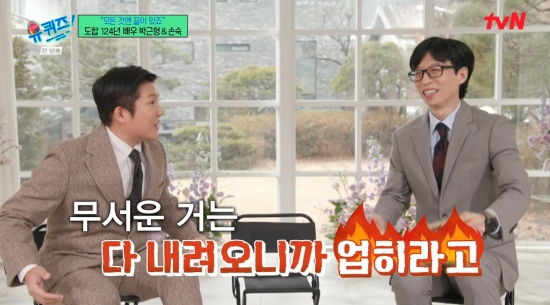 (엑스포츠뉴스이이진기자)방송인유재석이부상을당한조세호를업어줬다.29일방송된tvN'유퀴즈온더블럭'(이하'유퀴즈')에서는설특집으로꾸며진유재석이조세호를업어준장면이전파를탔다.이날유재석은부상을당한조세호에게"형이업어줄게.업혀라"라며등을내줬다.조세호는"그렇게까지안해도된다"라며만류했고,유재석은"한컷더따야지.무게가많이나간다"라며너스레를떨었다.유재석은"세호가지금녹화하다다리를다쳐가지고.(업어준건)카메라없었으면안했다"라며농담을건넸다.조세호는"무서운건다내려오니까업히라고하시더라"라며거들었고,유재석은"깜빡하고내려왔는데그때생각이났다"라며털어놨다.조세호는"위에서업어줬으면더좋았을텐데"라며덧붙였고,유재석은"아쉽다.거기까지는카메라가없는사각지대라.(카메라)앞에서했다"라며전했다.사진=tvN방송화면이이진기자[email protected]©엑스포츠뉴스.무단전재및재배포금지.