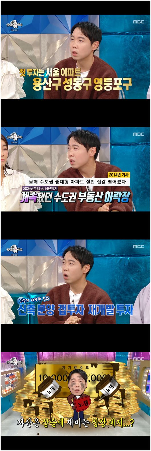 [OSEN=오세진기자]‘라디오스타’개그맨황현희가100억원대자산가라는말에대해해명했다.9일방영된MBC예능‘라디오스타’에서는배우진서연,개그맨황현희,성진스님,하성용신부가신년특집에출연했다.개그맨황현희는오랜만에미디어에모습을비췄다.그는“어느예능프로그램에나가서세자리수의액수를언급했다가‘100억대자산가’가되었다.그냥나는한물간개그맨이다”라며겸손하게인사했다.유세윤은“뭐라고자기를소개하고다니냐”라며놀렸고,황현희는“저는그냥경제가안어렵다고알려주고싶을뿐이다.저에대한편견을버려주시길바란다”라고거듭말했다.김구라는“개콘19기중가장낫다고생각하냐”라며노골적으로질문을던졌다.황현희는“그래도앞뒤로두세기수포함해서제가제일낫다고생각한다”라면서“장동민이개발했다는거,그거보다다나은제품을봤다.유상민홈쇼핑활약은다른사람이대체를했다고하더라”라고말했다.자산이100억원대라고알려진황현희.이에대해황현희는“재산100억대라니.그냥개그맨시절월급이아무일을하지않아도수익이발생하고있다”라고덤덤하게말해모두를놀라게만들었다.그렇다면그가이렇게투자에성공할수있었던이유는무엇일까?황현희는“2014년에‘개그콘서트’에서퇴출됐을때,청춘을다바쳐서사랑했던일인데내가사라져야하는걸깨닫자일을소유할수없다는걸깨달았다.그래서소유할수있는걸소유하자는마음을가졌다”라며투자공부를시작하게된이유를밝혔다.황현희는“대학원에가서2년동안투자를하지않고공부만하다가투자를시작했다”라면서“첫투자는서울의아파트를투자했다.용산구,성동구,영등포구를매매했다”라며첫투자로는부동산투자를했다고밝혔다.황현희는“2016년에베스트셀러가‘부동산은끝났다’라는책들이었다.부동산투자이익에대한책도있더라.그래서부동산을직접찾았더니집도안보고바로계약을하더라.2017년도초반에,매매수요는없는데,전세수요가높더라.2009년부터2014년에부동산이하락장이었다.그래서제집을월세로옮기고,투자금을만들어서동네분양받고,갭투자,재개발투자를했다.그렇게3개월동안투자를하고덮었다”,“그후에2021년초반동안상승장이었다”라고말해모두를놀라게만들었다./[email protected][사진]MBC예능‘라디오스타’Copyright©OSEN.무단전재및재배포금지.