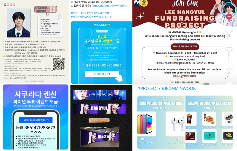 ‘프로젝트7’과‘스타라이트보이즈’가결승전을앞두면서투표열기가확산되고있다.27일에는JTBC오디션프로그램‘PROJECT7’(프로젝트7)가,28일에는‘스타라이트보이즈’의최종결승전이방송되는가운데,참가자들을향한팬들의응원열기가거세지는중이다.특히‘프로젝트7’첫방송부터실시간투표1위를차지했었던전민욱을비롯해타이틀송센터였던사쿠라다켄신을향한관심이모인다.팬들은파이널투표를위해모금과각종이벤트를진행하며참여를독려하고있다.전민욱과사쿠라다켄신은순위발표때마다1위자리를두고경쟁을펼쳐온만큼,각팬덤의경쟁도치열하다.최애참가자를데뷔시키기위한열기에가속도가붙으면서,최종순위에서는결과가어떻게발표될지이목이쏠린다.‘스타라이트보이즈’역시팬들의화력이눈길을끌고있다.BAE173한결의팬들은지하철역스크린에응원문구를띄워투표열기를끌어올리고있다.최종결승전을앞두고다양한서포트가국내외로전개되면서,두프로그램의최종회또한많은이들의기대를모으고있다.한편,최종결승전을앞둔‘프로젝트7’은27일오후8시50분에방송되며,‘스타라이트보이즈’는28일오후8시아이치이에서생중계된다.이수진기자[email protected]©일간스포츠.무단전재및재배포금지.