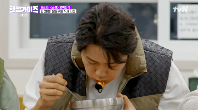 [OSEN=박하영기자]‘핸썸가이즈’오상욱이엄청난식욕을뽐냈다.22일방송된tvN예능‘일요일엔핸썸가이즈’(이하‘핸썸가이즈’)에서는운동부추성훈,김동현,오상욱이남다른먹성을자랑했다.이날엎치락뒤치락지역을획득하는가이즈팀과핸썸즈팀.순천에서정답을맞춘핸썸즈팀추성훈,김동현,오상욱은꼬막정식을먹으러향했다.시간이촉박한상황속세사람은꼬막기술을배운뒤본격적으로식사에돌입했다.추성훈은“빨리가야하는거아니냐”라고했고,김동현은“시간봐야된다”라더니“10분에나가야한다.금방먹어우리”라며자신감을드러냈다.오상욱은“시간이없는게아쉽다”라며서둘러먹방을선보였다.서로질세라더맛있게먹는세사람은무려20분만에식사를마쳤다.식사를끝낸김동현과추성훈이화장실을가자오상욱은아쉬운듯일어선채로꼬막을까서먹는등숟가락을놓지못해눈길을끌었다./mint1023/@osen.co.kr[사진]‘일요일엔핸썸가이즈’방송화면캡처Copyright©OSEN.무단전재및재배포금지.
