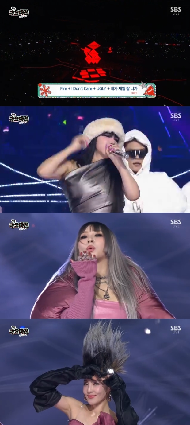 그룹투애니원이‘가요대전’에서히트곡메들리를선보였다.25일인천영정도인스파이어아레나에서‘2024SBS가요대전’(이하‘가요대전’)이개최됐다.NCT도영,투모로우바이투게더연준,아이브안유진이MC를맡았다.이날투애니원은완전체로‘가요대전’에출연해환호성을받았다.‘컴백홈’으로분위기를뜨겁게만든투애니원은‘아이돈케어’,‘어글리’,내가제일잘나가‘등히트곡메들리를선보이며떼창을얻었다.특히산다라박은데뷔초선보였던파격적인머리를그대로재현해눈길을끌었다.투애니원은카리스마넘치는라이브실력을통해관객들을압도해이목을집중시켰다.투애니원이‘가요대전’에출연하는것은2014년이후로10년만이다.관객들은히트곡을열창하며추억을소환하는투애니원을향해뜨거운반응을보였다.또투애니원은데뷔15주년을맞아아시아투어‘2024-252NE1아시아투어‘웰컴백’’을통해팬들과만나고있다.한편,‘2024SBS가요대전’에는지드래곤,키,2NE1,NCT127,NCT드림,스트레이키즈,(여자)아이들,에이티즈,WayV,있지,투모로우바이투게더,이영지,크래비티,트레저,에스파,엔하이픈,아이브,엔믹스,르세라핌,뉴진스,보이넥스트도어,제로베이스원,라이즈,투어스,NCT위시,아일릿,베이비몬스터,넥스지,이즈나까지총29팀이출연한다.이수진기자[email protected]©일간스포츠.무단전재및재배포금지.