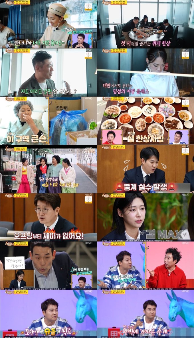 예능‘사장님귀는당나귀귀’(제공:KBS2)KBS2‘사장님귀는당나귀귀’정지선이대만뉴스1면을장식하며월드클래스인기를입증했다.지난26일(일)방송된KBS2예능‘사장님귀는당나귀귀’(연출안상은,이하‘사당귀’)290회는설연휴시작에도불구하고전국시청률4.8%,최고시청률6.5%를기록하며139주연속동시간대예능1위를이어갔다.(닐슨코리아기준)대만VIP대상파인다이닝행사를성공적으로마친정지선보스가요리보조를도맡았던김숙과후배셰프들을이끌고대만미식투어를시작했다.딴삥,소룡포등인기메뉴20개를주문하는정지선의큰손면모에김숙이혀를내둘렀고,쉴틈없이김숙의입안으로음식을넣어주는다정함에한껏부른배를두드리며향한두번째코스는대만의랜드마크인타이베이101타워의뷔페레스토랑.전담직원의에스코트를받으며들어간레스토랑의총괄셰프가직접나와정지선에게환영선물을전했고,랍스터,킹크랩,향어등최고급음식을셰프들이즉석에서조리하는모습을지켜보던김숙은“광대까지(음식으로)눌러놔야지”라며설렘을드러냈다.정지선은딤섬을만드는데걸리는시간이8초,9초밖에안된다며만두피의주름까지확인해감탄을자아내는가하면일반인은물론현지셰프들까지정지선셰프를알아보고팬인증하는등‘월클’면모로놀라움을선사했다.이순실보스는서현경,나민희와함께‘북한한가인’으로불리는김서아의집을방문해북한식설한상차림을장만했다.이순실은“1년내내잘먹고잘살려면설날에잘먹어야된다”며돼지고기수육과밥알찰떡,감자송편까지뚝딱완성했다.김서아는“남한이어서가능한경험”이라며즐거워했고,음식을맛본나민희는“북한에서엄마가해주던맛그대로”라며추억에잠겼다.엄지인보스가이재후캐스터,한유미해설위원과함께신진KBS배구캐스터오디션을진행했다.엄지인은남현종에게재미를,김진웅에게는완급조절을,홍주연에게는자신감을개인미션으로전달했고,오디션첫주자남현종이한유미와중계를시작했다.안정적으로중계를시작했지만잘못된정보를전달하는실수이후경직된상태가이어졌고,이재후는“오프닝부터재미가없다.중고교방송동아리수준”이라며혹평했다.다음주자김진웅은“오늘은되는날이다”라며자신감넘치게오프닝을시작,실수도은근슬쩍정정하며넘어가보려하지만이재후와엄지인의표정은점점어두워지고,클로징멘트도포기한듯넋을놓고있던김진웅에게엄지인은역시성량지적을했고,이재후역시묘사능력과시청자의관심도파악부족에대한아쉬움을드러냈다.마지막주자홍주연이중계를시작했고,깔끔한오프닝멘트에이어선수소개,경기진행까지매끄럽게이어갔다.영상을지켜보던전현무는“긴박감,긴박감을줘주연아”라며친근하게응원을이어가모두의의심어린시선을받았다.전현무는이에그치지않고오디션이끝나자“처음치고는잘했다.긴박감은떨어졌지만해설위원과의케미가좋았다”고칭찬했다.이에박명수는“돌잔치가있다고하더라”고농을던지자전현무는“조만간슈퍼맨찍지뭐”라고응수해또다시열애설에불을지폈다.이재후는“속도가좋았다”며미소를지었고,엄지인역시“기대가없었는데배구에대한이해도가가장높았다”라며칭찬을이어갔다.KBS신진배구캐스터자리는과연누가차지했을지다음주방송에기대가고조된다.한편‘사장님귀는당나귀귀’는매주일요일오후4시40분KBS2TV에서방송된다.송미희기자[email protected]뉴스연예팀기사제보[email protected]©bnt뉴스.무단전재,재배포및AI데이터활용금지