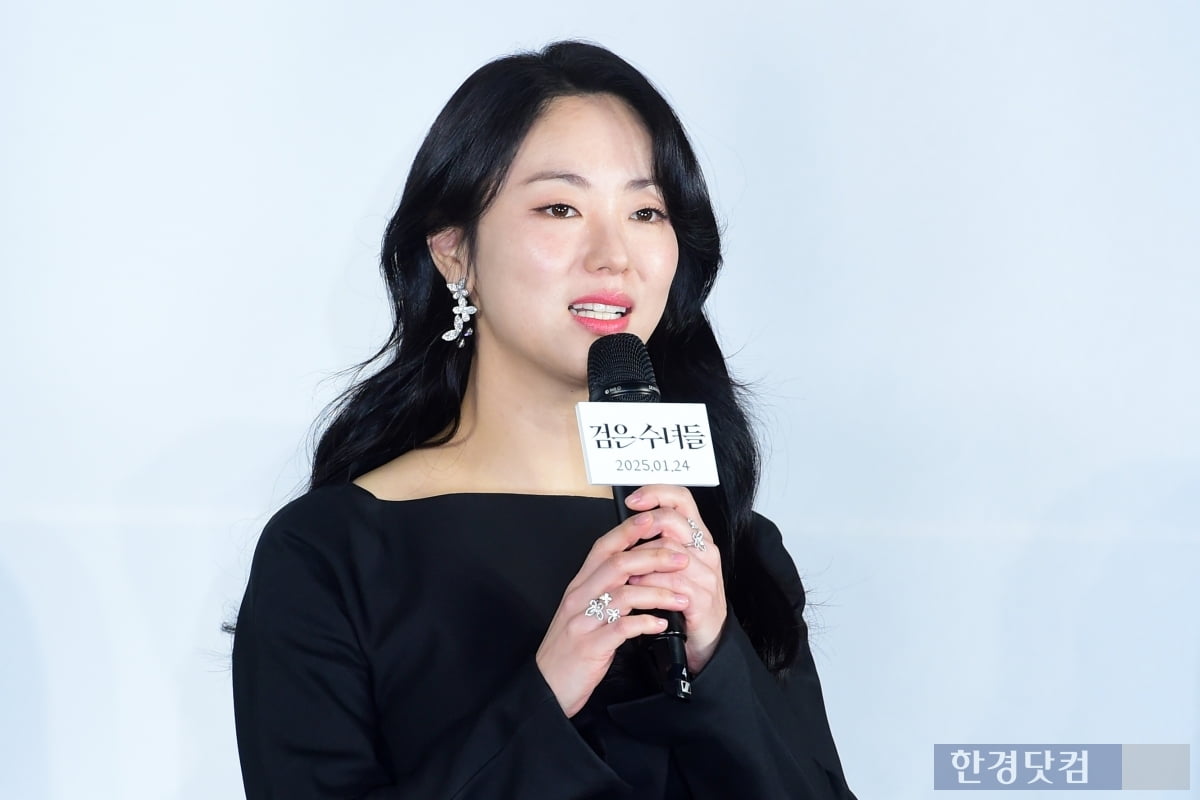 배우송혜교가16일서울용산구CGV용산아이파크몰에서열린영화'검은수녀들'(감독권혁재)제작보고회에서매력을발산하고있다.'검은수녀들'은강력한악령에사로잡힌소년을구하기위해금지된의식에나서는사람들의이야기를그린작품이다.2024.12.16/뉴스1ⓒNews1권현진기자(서울=뉴스1)장아름기자=배우송혜교가'검은수녀들'을통해전여빈과호흡을맞춘소감을밝혔다.16일서울용산구CGV용산아이파크몰에서는영화'검은수녀들'(감독권혁재)제작보고회가진행됐다.이날자리에는권혁재감독을비롯해송혜교전여빈이진욱문우진이참석해이야기를나눴다.이날자리에서송혜교는"저는너무좋았다"며"개인적으로여빈씨와꼭한번작품에서만나고싶다는생각을갖고있었다"고운을뗐다.이어그는"친한배우들이여빈씨와친해서얘기도많이들었다"며"항상좋은얘길많이들었는데현장에서같이연기하니까들었던것보다좋더라"고애정을보였다.또한그는"여빈씨는제가힘이됐다고하지만,저한테는여빈씨가큰힘이됐다"며"송혜교에게전여빈이란?"질문에는"나의구세주"라며"미카엘라가없으면유니아는뭐든혼자할수없었을것"이라고답해눈길을끌었다.한편'검은수녀들'은강력한악령에사로잡힌소년을구하기위해금지된의식에나서는사람들의이야기를그린영화다.'검은사제들'의두번째이야기로,구마가허락되지않은신분의수녀들이금지된의식에나선다는차별화된설정으로기대를모은다.오는2025년1월24일개봉[email protected]©뉴스1.Allrightsreserved.무단전재및재배포,AI학습이용금지.