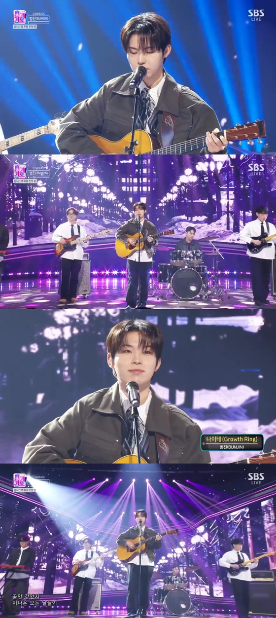 '인기가요'범진이고품격라이브로대중의감성을자극했다.15일오후SBS'인기가요'가방송된가운데,이날범진은신곡'나이테'무대를선보였다.범진은탄탄한보컬실력과풍부한감정표현으로보는이들의시선을사로잡았다.범진은추위를녹일듯한포근한목소리로귀를호강시키는가하면,서정적인음색과함께높은몰입감을선사했다.특히범진은차분한보컬과기타연주를통해특유의따뜻한분위기를자아냈고,뛰어난완급조절로시청자들의마음을제대로홀렸다.범진은나지막이읊조리듯노래하는동시에시원한고음까지선사,짙은여운을안겼다.쉴틈없이휘몰아치는달콤한목소리로강렬한존재감을남긴범진은최근첫정규앨범'나이테(GrowthRing)'를발매했다.마치나무의나이테처럼우리의삶에도다양한굴곡과흔적이새겨진다는생각에서출발한앨범으로,동명의타이틀곡'나이테'를비롯해자작곡11곡이수록됐다.겨울과어울리는감성적인'나이테'에대중의반응이뜨거운가운데,범진은각종음악방송을비롯해다양한라디오프로그램에출연하며소통을이어가고있다.이와함께범진은앞서대만과일본에서공연을성공적으로마친바,글로벌활약역시펼치고있다.김선우엔터뉴스팀기자[email protected](콘텐트비즈니스본부)사진=SBSCopyright©JTBC.무단전재및재배포금지.