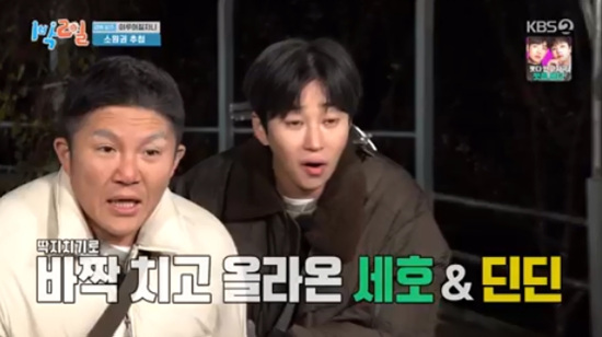 OSENDB[OSEN=장우영기자]‘1박2일시즌4’유선호가문세윤을도발했다.15일방송된KBS2‘1박2일시즌4’에서는경상북도구미와상주로여행을떠난여섯멤버들의모습이담겼다.세호팀(조세호,이준,유선호)과딘딘팀(김종민,문세윤,딘딘)으로나뉘어저녁복불복게임이펼쳐진가운데1라운드허수아비물배달게임에서는세호팀이기분좋은승리를거뒀다.방송화면캡쳐2라운드는쪼그려앉아손바닥밀치기로진행됐다.어마무시한체급을자랑하는문세윤을보유한딘딘팀의우세가점쳐졌으나쪼그려앉기가변수였다.유선호가딘딘과김종민을연달아제압하며세호팀이승리에근접한가운데유선호는딘딘팀마지막주자문세윤에게“아저씨들어와”라며도발해웃음을자아냈다.방송화면캡쳐문세윤은일격에유선호를제압하며체급차이를증명했다.유선호는“무슨비행기가밀친것같다”며큰충격을생생히전했다.문세윤은기세를몰아조세호까지물리치며승부를원점으로돌렸다.조세호는“벽을미는것”이라며문세윤의묵직함에혀를내둘렀다.방송화면캡쳐이준과문세윤의피할수없는대결.겁을먹은이준이었지만침착하게때를기다려타이밍에맞춰문세윤을밀었고,문세윤은자세를잡다발을헛디뎌결국탈락하고말았다./[email protected]©OSEN.무단전재및재배포금지.