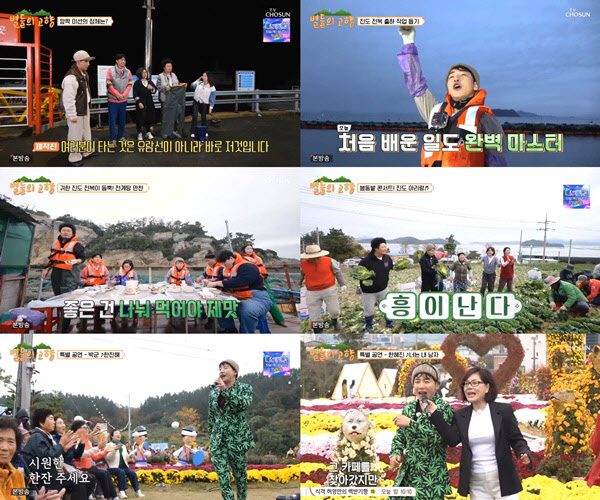 [이데일리스타in허윤수기자]가수박군과한혜진이전남진도를찾아전복잡이에나섰다.사진=TV조선‘별들의고향’박군과한혜진은15일방송된TV조선‘별들의고향’에서윤택,김승현,송다경과함께고향5남매를결성하고진도를찾았다.이들은진도특산물인전복을직접채취하고포장,홍보,판매까지모든과정에참여했다.5남매는이른새벽크레인배를타고전복잡이에나섰다.박군은양식장으로내려가크레인줄을직접묶는역할을맡아능숙하게소화했다.특히일에익숙하지않은김승현을독려해작업속도를높이며에이스다운면모를보였다.선장은박군에게스카우트제의를하기도했다.전복판에서전복을떼는작업을한한혜진은전복맛을본뒤“거짓말처럼비린맛이하나도나지않는다”라며놀랐다.윤택은진도전복과육지에서재배한대파,구기자를넣어전복삼계탕을만들었다.바다작업을마친5남매는전복포장을마친뒤홍보에나섰다.봄동밭을찾은5남매는봄동수확에동참했다.한혜진은진도아리랑을부르며흥을더했다.박군은김승현과함께운림산방을찾았다.김승현은재능을살린캐리커처로군민과관광객을유도했다.적극적인홍보활동속에많은사람이모이자미니콘서트가펼쳐졌다.박군은‘한잔해’와‘아침밥상’으로한혜진은‘너는내남자’로분위기를달궜다.5남매는전복완판에성공했고이날수익금전액을진도군에기부했다.허윤수([email protected])Copyright©이데일리.무단전재및재배포금지.