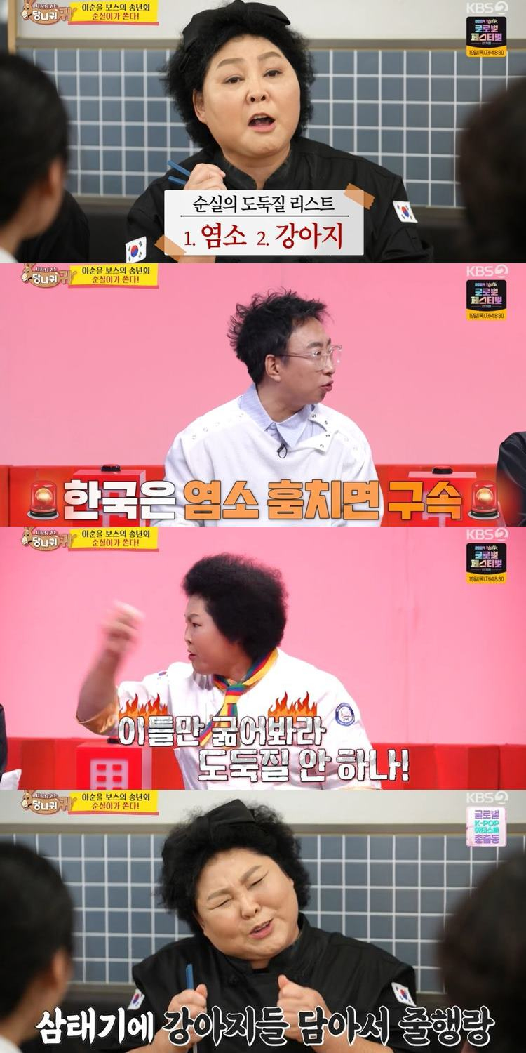 사진=KBS2‘사장님귀는당나귀귀’방송캡처.탈북요리사이순실이북한에서도둑질을자주했었다고고백했다.15일방송된KBS2‘사장님귀는당나귀귀’(이하‘사당귀’)에서는이순실보스가직원들과함께뷔페에방문했다.이날이순실은북한군대문화를이야기하며“1980년대에는군배식할때식판위로밥이소복했다.그이후로는식판높이보다적게밥을줬다.군사훈련없이매일군인들이산나물,풀뿌리를캐고먹을게없어서육해공가리지않고별걸다먹었다”고해충격을안겼다.“그중에서도어떤게제일맛있었냐?”라는박명수의질문에그는“뱀이제일맛있었다.구운장어맛이난다”라고설명했다.이어북한에서훔쳐본리스트에대해서도언급했다.이순실은“강아지,염소를훔쳐봤다.이틀만굶어봐라도둑질안하나”라면서“남의집에몰래들어갔는데새끼강아지다섯마리가바글바글하더라.삼태기에강아지를담아서도망갔다.이후강아지를팔아서빵이나떡으로끼니를해결했다”라고말했다.김지혜기자[email protected]©일간스포츠.무단전재및재배포금지.