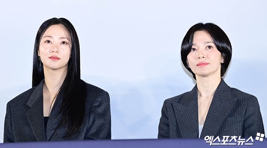 (엑스포츠뉴스코엑스,김유진기자)송혜교가'검은수녀들'로다시한번새로운얼굴을선보이며전여빈과의워맨스로관객들을몰입시킨다.20일서울강남구메가박스코엑스에서영화'검은수녀들'(감독권혁재'언론시사회가열렸다.이자리에는권혁재감독과배우송혜교,전여빈,이진욱,문우진이참석했다.'검은수녀들'은강력한악령에사로잡힌소년을구하기위해금지된의식에나서는사람들의이야기를그린영화다.송혜교가위험에처한소년을살리기위해수단과방법을가리지않는수녀유니아역을,전여빈이거침없는유니아수녀에게반발심을가지면서도고통받는소년을구하기위해힘을보태는정신의학과전공의수녀미카엘라를연기했다.이진욱은구마를반대하는정신의학과전문의신부바오로역으로,문우진은강력한악령에사로잡힌소년희준으로강렬한인상을남긴다.'검은수녀들'은2015년개봉해544만명의관객을동원하며흥행했던'검은사제들'의스핀오프다.권혁재감독은"'검은사제들'을만든제작사영화사집에서오랜시간기획하고시나리오작업을해온것으로알고있다.저도시나리오를받아봤을때강렬하게,휩쓸리듯읽었던기억이있다"고얘기했다.이어"온전히대본에충실하려고노력했다.좋은배우분들,훌륭한스태프분들과함께하나하나만들려고노력했다"고설명했다.송혜교는'검은수녀들'을통해11년만에국내스크린에복귀했다.촬영내내온전히유니아의감정상태에몰입했었다고말한송혜교는"'검은수녀들'은인연이닿았던작품이다.'더글로리'를끝내고시나리오와대본을장르위주로보면서고르고있었는데,그때마침'검은수녀들'이라는시나리오를읽게됐다.너무힘든도전이겠지만,이작품을하면내가몰랐던새로운표정이있지않을까하는궁금증이있었다.그래서선택하게됐다"고말했다."로맨스로다시돌아오고싶지는않았다"고말한송혜교는어디로튈지모르는유니아캐릭터의성격을표현하기위해촬영6개월전부터흡연연습에도공을들였다.송혜교는"첫흡연연기였다.제가비흡연자여서어떻게해야할까고민을많이했는데유니아수녀캐릭터만생각하면꼭필요한부분이더라.촬영들어가기6개월전부터담배를태우면서연습을했다.첫신이흡연부터시작을하고,빅클로즈업으로시작되기때문에거짓말로피우고싶진않았다.영화를찍는동안연기연습도많이했지만담배피우는연습도많이했다"고돌아봤다.서로를경계하다점차의지하며악령을쫓는길에함께하게되는전여빈과의워맨스도시선을모은다.전여빈은"여성으로서연대해야되기때문이아니라,한생명을구하기위한더큰신념이있었기때문에둘이한마음을가졌던것같다.이과정에서바오로(이진욱분)신부님처럼주위의도움이필요하게되는데,뭔가단계적으로나아가는사람의걸음들과도움을느꼈다.그것들이영화안에서잘표현됐으면좋겠다는생각이었다"고말했다.또"현장에서(송)혜교선배님을바라보는순간이참좋았다.많은말을나누지않는순간에도선배님을보면서많은것을배울수있었다.미카엘라도그랬을것같다"고덧붙였다.송혜교역시"연기를하면서(전)여빈씨와정말행복했던기억이많다.영화내용은행복한내용이아니지만,같이작품을만들어가면서사적인얘기까지대화를많이나눴다.영화속에서유니아와미카엘라가서로가까워지는모습과비슷했던것같다.이두여성이서로다른신념을가지고있다가하나가되는과정을연기하는것이어려웠지만즐거웠다"고만족했다.이진욱도"촬영에있어서의부담감은덜했다.그보다는너무멋진배우들과작업하는것에대한기대감이컸다.분명히좋은결과가있을것이라고믿고있다"며작품을향한애정을보였다.문우진도"저도부담감보다는폐를끼치지말고연기하자는마음이었다.부담감보다,앞으로관객분들이영화를어떻게보시게될지에대한기대감이더큰것같다"고말했다.또악령에사로잡힌연기를하면서도"트라우마는없었다"며안전하게촬영을마쳤다고설명했다.특히'검은수녀들'에는'검은사제들'에서열연했던강동원이특별출연해시선을모은다.권혁재감독은"연출자로서작품을풍부하게만들어주셔서감사하다는마음이크다.'검은사제들'의최준호부제그모습그대로오셨더라.열심히준비하시고집중하시는모습에서저도감탄했다"고고마워했다.'검은수녀들'은24일개봉한다.사진=엑스포츠뉴스박지영기자,NEW김유진기자[email protected]©엑스포츠뉴스.무단전재및재배포금지.