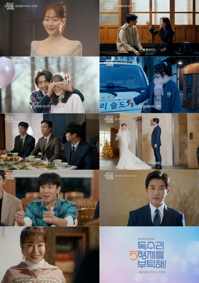 ‘독수리5형제를부탁해’엄지원파란만장인생사(사진:KBS)‘독수리5형제를부탁해!’가엄지원의파란만장한인생사를예고하는종합예고영상을공개했다.오는2월1일(토)저녁8시첫방송예정인KBS2TV새주말드라마‘독수리5형제를부탁해!’는오랜전통의양조장독수리술도가의개성만점5형제와결혼열흘만에남편의갑작스러운죽음으로졸지에가장이된맏형수가빚어내는잘익은가족이야기를그린드라마다.16일(오늘)공개된종합예고영상은웨딩드레스를입고눈부신자태를뽐내는마광숙(엄지원분)의행복한모습으로시작된다.하지만광숙의엄마공주실(박준금분)은“내딸이,마광숙이가이집귀신이된다고합니다”라며분노해두사람의상반된태도가극에대한궁금증을끌어올린다.행복한신혼생활을꿈꾸던광숙에게결혼한지10일만에남편오장수(이필모분)가교통사고를당하게되며큰시련이닥친다.“짧은시간이었지만나한텐최고의남편이었어요”라며남편을떠나보내는광숙의한마디는장수를향한애틋한마음이그대로느껴진다.이어광숙은우체국을그만두고독수리술도가를인수하겠다며파격행보를펼친다.또한,그는“시자는빼고그냥동생합시다.오케이?”라며5형제의든든한가장까지자처해마광숙의술도가입성기를궁금하게만든다.뿐만아니라빚쟁이들이몰려와난감해하는오범수(윤박분)앞에나선광숙이“그깟돈내가줄게요!”라며시동생들의걱정,근심까지책임지는호탕한모습은보는이들에게시원한한방을선사한다.그런가하면한동석(안재욱분)은휘청이는광숙을잡아주며심상치않은인연임을드러낸다.특히만취해잔디밭에대자로뻗어있는그녀를보며“가지가지하네”라고말하는장면은처음부터엇갈린두사람의만남을예고,이들이펼칠유쾌한티격태격케미를기대케한다.이처럼‘독수리5형제를부탁해!’는결혼한지얼마되지않아남편을잃은광숙과각기다른사연을가진시동생들의동고동락,극과극성향의광숙과동석이펼치는흥미진진한스토리로안방극장에웃음은물론감동까지선사할전망이다.KBS2TV새주말드라마‘독수리5형제를부탁해!’는‘다리미패밀리’의후속작으로오는2월1일(토)저녁8시첫방송된다.박지혜기자[email protected]뉴스연예팀기사제보[email protected]©bnt뉴스.무단전재,재배포및AI데이터활용금지