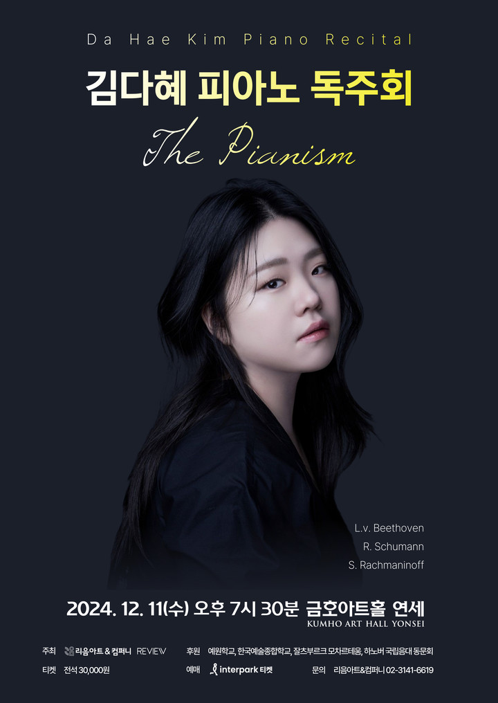 독창적음악언어로섬세한감동전달(MHN스포츠김종현인턴기자,김현숙기자)엘리트코스를밟으며유럽무대를휩쓴피아니스트김다혜가국내에서연주를한다.오는11일금호아트홀연세에서피아니스트김다혜독주회'ThePianism'을개최한다.이번공연에서는슈만의어린이정경,베토벤의월광소나타,라흐마니노프의피아노소나타1번등이연주된다.김다혜는이번공연에서감수성과화려한기교를모두담아낸음악을선보이며,섬세한감정전달과오케스트라적인풍부한표현력을통해관객에게깊은감동을전할예정이다.'ThePianism'이라는부제는피아노가지닌감정전달력과표현력을탐구하는의미를담고있으며,연주자의해석과창조과정을통해새로운음악적세계를펼치겠다는의지를나타낸다.김다혜는이공연을통해자신만의독창적인음악언어와깊이있는예술적해석을선보일예정이다.김다혜는예원학교와한국예술종합학교예비학교에서김대진교수에게사사한후,오스트리아잘츠부르크모차르테움국립음대에최연소로입학,거장칼하인츠캠머링에게배우며만장일치로최고점수(Auszeichnung)를받으며졸업했다.그는2009년스페인마요르카Auditorid'Alcudia에서초청연주를가진이후,2011년예술의전당콘서트홀에서RisingStar&YouthOrchestra와협연했다.또한,2013년에는잘츠부르크모차르테움콘체르토오디션에서우승하며스위스BernSymphonyOrchestra와협연했다.김다혜는유럽과국내를아우르는다양한무대에서활발히활동하며뛰어난연주력을인정받았다.그는이탈리아ValTidoneFestival,오스트리아TirolPinswang홀,잘츠부르크WienerSaal등유수의홀에서연주하며,국내에서도예술의전당IBK챔버홀등에서꾸준히무대에올랐다.2018년스페인DeliaSteinberg국제콩쿠르에서우승한후,2022년과2023년에는독일SaarbrückerSommermusik에초청받아연주했다.올해2월에는예술의전당IBK홀에서독주회를가졌으며,현재연세대학교음악대학에서후학양성에도힘쓰고있다.김다혜는본공연에앞서"음악은마음깊이스며드는아름다움을지니고있으며,생동감과열정을불어넣고치유의힘을발휘한다고생각합니다.이번연주에서도그러한음악의가치를전하기위해최선을다하겠습니다."며기대감을밝혔다.사진=리음아트&컴퍼니Copyright©MHN스포츠.무단전재및재배포금지.