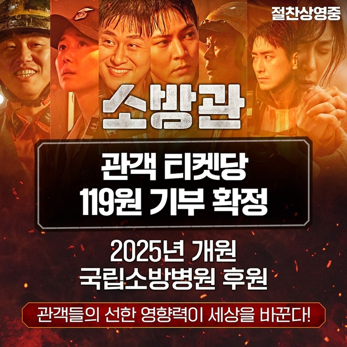 ㈜바이포엠스튜디오영화‘소방관’(감독곽경택)이관객참여형기부챌린지를진행한다.4일배급사㈜바이포엠스튜디오는이같은소식을밝혔다.영화‘소방관’을유료관람한관객티켓금액당119원을대한민국소방관장비및처우개선을위해현금기부하는것.이번119원기부챌린지는관객들이영화를보는것만으로도소방관을위한기부로이어지는형태다.만약,100만명이관람할경우1억1,900만원을,손익분기점250만명돌파시3억원을현금기부할예정이다.더불어손익분기점돌파이후추가현물지원까지영화사에서통큰기부를계획하고있디.기부금액은2025년개원예정인국립소방병원을위해후원할예정이다.대한민국관객들의119원기부챌린지가선한영향력으로이어져세상을따뜻하게바꾸는뜻깊은행보로이어나갈것으로기대된다.영화는2001년홍제동화재참사사건당시열악한환경속에서도화재진압과전원구조라는단하나의목표를가지고투입된소방관들의상황을그린이야기.오늘개봉했다.Copyright©스타투데이.무단전재,재배포및AI학습이용금지