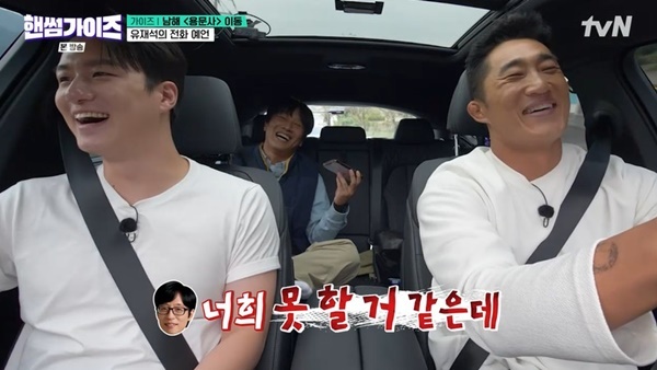 tvN‘핸썸가이즈’캡처tvN‘핸썸가이즈’캡처유재석의놀림에도차태현팀이승리를거뒀다.12월8일방송된tvN‘일요일엔핸썸가이즈’에서가이즈팀차태현,김동현,신승호는이동중에유재석의전화를받았다.김동현은운전을하느라유재석의전화를받지못했고차태현이대신전화를걸어“동현이에게무슨볼일이있냐.얘가내비를보고있다”며“뭐찍고있다.새로하는것”이라고새프로그램을하고있다고알렸다.유재석이“뭐찍고있냐”고묻자차태현은“우리팀은나랑동현이랑신승호라고연기자가있다”고팀을설명했고,신승호는유재석에게“선배님오랜만에인사드린다”고인사했다.김동현은“아침부터운전하느라전화를못받았다”고상황을설명했다.차태현이“남해에서미션성공하고갈거”라고목적지를말하자유재석은“너희못할거같은데?”라고놀렸다.차태현이“거의비등하다”며상대팀에“이이경,오상욱,BTS진”이있다고말하자유재석은“너희가졌네.수고들해라”며계속놀렸다.하지만이후빙고게임은가이즈팀의승리.남해에서퀴즈정답‘야단법석’을단번에맞힌차태현의공이컸다.(사진=tvN‘핸썸가이즈’캡처)[뉴스엔유경상기자]뉴스엔유경상yooks@기사제보및보도자료[email protected]ⓒ뉴스엔.무단전재&재배포금지Copyright©뉴스엔.무단전재및재배포금지.
