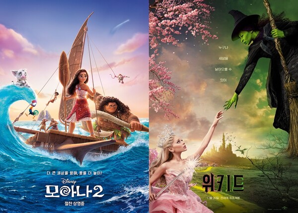 아이즈ize최재욱기자100만관객넘어선'모아나2'와'위키드'푀스터.사진=월트디즈니컴퍼니코리아,유니버설픽쳐스할리우드가족영화들이한국극장가를장악했다.'모아나2'와'위키드'가100만관객을돌파하며쌍끌이흥행을이끌고있다.우선1일'모아나2'가실관람객호평속,개봉5일만에100만관객을돌파했다.'모아나'는개봉첫날19만관객을동원하며'인사이드아웃2'의오프닝스코어를넘고압도적박스오피스1위를차지한바있다.7일연속박스오피스1위자리를차지하다'모아나2'의개봉으로2위로물러난'위키드'는전날30일오전100만관객을넘어섰다.영화관입장권통합전산망에따르면'모아나2'는1일(전8시기준,누적관객수114만5,037명을동원했다.이는350만관객을동원하며올해개봉영화흥행TOP6에오른'웡카'보다4일,전작'모아나'보다5일,그리고720만관객을동원하며신드롬을일으켰던'엘리멘탈'보다무려6일이나빠른기록이다.이로써'모아나2'에대한관객들의뜨거운관심을다시한번입증했다.'모아나2'의뒤를이은'위키드'도110만관객을넘어서며흥행순항중이다.역대급호평이쏟아지는중이어서장기흥행이예상된다.'히든페이스',사진=NEW평단의호평을받은한국영화'히든페이스'가입소문에힘입어꾸준히관객을모으며할리우드대작들의공세에홀로맞서고있다.'히든페이스'는30일8만8129명을모아누적관객수65만3,404명을기록중이다.개봉첫주주말보다관객이늘어나며역주행흥행가능성을보이고있다.이에'히든페이스'측은개봉4주차까지무대인사를계획하며총력을기울이고있다.손익분기점인120만명에도달할수있을지귀추가주목된다.오는4일한국영화기대작인송강호주연의'1승'과곽경택감독의'소방관'이개봉될예정이다.과연한국영화가할리우드영화들이장악한극장가에서자존심을세울지관심이모아진다.Copyright©ize&ize.co.kr,무단전재및재배포금지