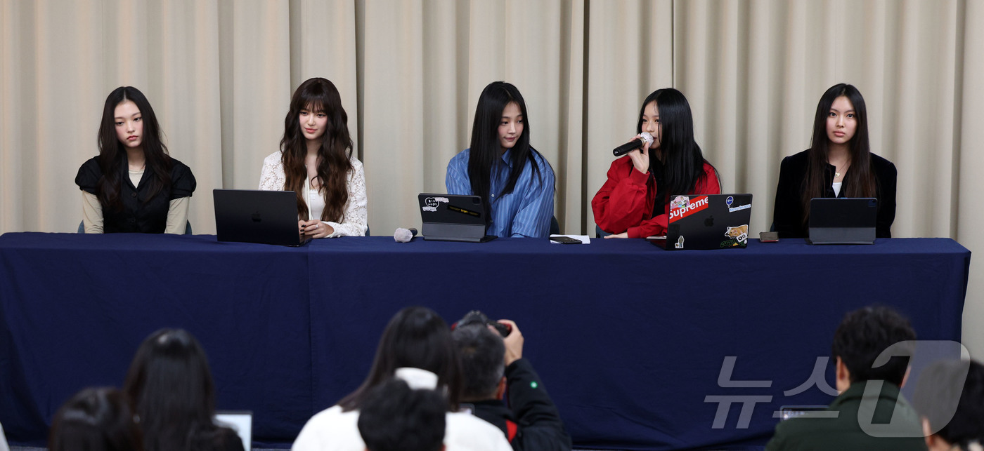 28일뉴진스전속계약해지관련긴급기자회견그룹뉴진스가28일서울강남구스페이스쉐어삼성역센터에서어도어와의전속계약해지관련긴급기자회견을하고있다.왼쪽부터해린,다니엘,하니,민지,혜인.(공동취재)2024.11.28/뉴스1ⓒNews1권현진기자(서울=뉴스1)김민지기자=걸그룹뉴진스가어도어와전속계약을해지하겠다며,향후어떤일이일어나든즐기겠다고말했다.28일오후서울강남구영동대로스페이스쉐어삼성역센터갤럭시홀에서진행된뉴진스5인(민지,하니,다니엘,해린,혜인)의전속계약해지관련긴급기자회견에서멤버민지는현재진행중인이슈에대한사견을전했다.민지는"용기있는사람이세상을바꾸고더주체적으로살수있다,마음먹은대로실천하는용기가모두에게있는건아닌데버니즈와멤버들이있어가능했다"라며"또'설렘을만들고싶다'는민희진대표님의말씀이와닿고큰용기가됐다,사람이본인의인생을걸고뭔가를지킨다는게쉽지않다,스스로나서지않으면어떤것도해결되지않는다"라고말했다.이어"앞으로많은일들이벌어질거고어떤방해가있을지모르지만5명이힘을모아서모험과도전을즐기기로했다,이런우리의행보를지지하고지켜봐달라"라며"마지막으로학교든직장이든서로괴롭힘없이존중하며일하는환경만들어지길바란다"라고덧붙였다.지난9월뉴진스는어도어의모회사하이브와민희진어도어전대표의내홍속에서민전대표의대표직복귀를요구한바있다.하지만하이브측은이를수용하지않았다.또한지난달서울중앙지방법원은어도어전대표인민희진이하이브를상대로낸의결권행사등가처분신청을각하하면서그의대표직복귀가무산된바있다.뉴진스는지난13일하이브레이블이자소속사인어도어에김민지,하니팜,마쉬다니엘,강해린,이혜인등본명으로내용증명을보냈다.멤버들은이를통해14일이내에전속계약의중대한위반사항을모두시정할것을요구했고,이에응하지않을경우전속계약을해지하겠다는뜻을전한것으로알려졌다.뉴진스의내용증명을어도어는지난14일받았기에28일이어도어가뉴진스의답변및시정요구등의시한일이다.어도어는시한일을하루앞둔지난27일공식사회관계망서비스(SNS)계정을통해"지난10월7일빌리프랩은공식X계정과'알려드립니다'를통해'매니저무시발언'과관련된입장문을발표한바있다"라며"(빌리프랩의주장은)뉴진스멤버하니의진술과전혀다르다,하니는올해5월27일빌리프랩의한구성원이하니에대해'무시해'또는'무시하고지나가'라는취지의발언을한것으로분명히기억하고있다,비교적짧은순간에벌어진일인데하니가당시의상황을빠짐없이기억해내야만문제를삼을수있다는것은피해자에게너무가혹하고엄격한잣대"라고지적하는입장문을냈다.해당입장문에대해어도어측은"아티스트의내용증명에따른조치사항의이행"이라고명시하기도했다.한편민희진전어도어대표의대표직복귀에대한요청도해당내용증명에포함됐던것으로전해졌으나,민전대표는지난20일어도어사내이사직을사임하며회사를떠난바있다[email protected]©뉴스1.Allrightsreserved.무단전재및재배포,AI학습이용금지.