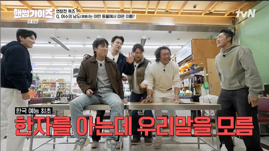 tvN'핸썸가이즈'22일방송tvN'핸썸가이즈'(서울=뉴스1)김보기자=추성훈이한국어퀴즈에서고전했다.22일방송된tvN새예능프로그램'일요일엔핸썸가이즈'(이하'핸썸가이즈')에서는멤버들이퀴즈대결을펼쳤다.이날멤버들은미션수행에서양팀이동점을이루며승패를가리지못하게되었다.이에전체멤버들을대상으로연장전퀴즈를진행했다.첫번째퀴즈는"여수섬의이름은이섬의생김새를닮아'낭도'라고불린다,이동물은무엇인가"였다.한자문화권의재일교포출신인추성훈은제시된한자를보자마자곧바로자신있게손을들었다.멤버들은"이러면한자나오면반칙이다"라며강하게항의했다.그러나반전이있었다.추성훈은갑자기스마트폰을꺼내더니"아니,(그정답의)한국말이뭔지모르겠다"라고말한것이다.그러자차태현은추성훈을저지하며"그러면나도스마트폰으로한자보면되지,뭔소리냐"라며폭소했다.추성훈은"Wolf,Wolf"라며절규했고,결국정답인늑대를겨우맞히며첫번째정답자가되었다[email protected]©뉴스1.Allrightsreserved.무단전재및재배포,AI학습이용금지.
