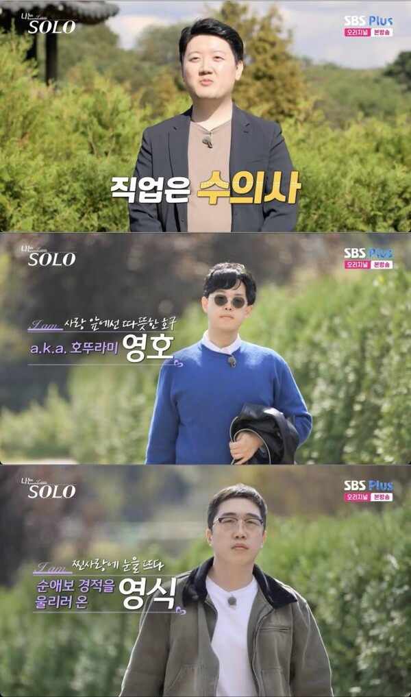 방송화면캡쳐[OSEN=김예솔기자]24기너드남특집이시작됐다.25일밤방송된SBSPlus,ENA예능프로그램‘나는SOLO’에서는솔로나라24번지너드남특집이진행된가운데남자출연자들이등장했다.이날처음등장한24기영수를보며송해나는"피부가하얀걸보면집에굉장히많이있는사람"이라고추측했다.데프콘은"멀리서보면살찐이동건씨느낌이있다"라고말해웃음을자아냈다.방송화면캡쳐영수는수의사로동물병원을개원한지4년된연봉2억원이라고말했다.영수는"결혼정보업체를이용해봤는데서로조건을많이보더라"라며"나는아직낭만을찾는데설레는연애를하고싶다"라고말했다.영수는10kg찌기전사진을공개해훈남으로눈길을끌었다.영수는"혼자외벌이로먹여살릴수있으니까하고싶은일하면하고쉬고싶으면쉬어도된다"라며"외모를안보진않는데고양이상을좋아하는것같다"라고말해눈길을끌었다.방송화면캡쳐다음으로영호가등장했다.데프콘은"내가좋아하는얼굴이다"라고외쳐웃음을자아냈다.영호는"외적으로나도좋은조건이아니라는걸알지만예쁜분들을쫓아다녔다"라고말했다.영호는"연애할땐거래하고싶지않다.내가표현할수있는건많이표현하자는주의"라며"선물주는것도좋아해서일상적으로데이트할때꽃을주려고하고명품가방도선물했다"라고말했다.이모습을본이이경은"저건좀아닌것같다.명품은함부로주면안된다"라고말했다./[email protected]©OSEN.무단전재및재배포금지.
