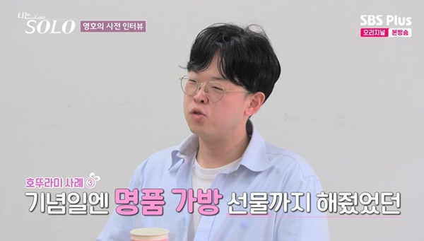 ENA,SBSPlus‘나는SOLO’캡처ENA,SBSPlus‘나는SOLO’캡처24기영호가연애스타일을말했다.12월25일방송된ENA,SBSPlus‘나는SOLO’에서는너드남특집24기가첫등장했다.영호는연애횟수7번,평균연애기간은1년이상.결혼까지못이어진이유로“제가마음을안먹은이유도있고누가봐도예쁜사람이좋았고,외적으로저도좋은조건은아니란걸알면서도그런사람들을쫓아다녔다”고말했다.영호는“연애할때거래하고싶지않다.내가이만큼해줬으니너도이만큼해줘야지하는게싫다”며“여자친구가야근을새벽까지한적이있는데택시태워보내기싫어서마중나가고출근시키고.선물도좋아해서데이트할때꽃한두송이라도주고.기념일에는명품가방도사줬다”고예를들었다.영호는연애사때문에호뚜라기가별명이라며“호구같다고한다.선물로준것에대가를바라지는않았다”고도말했다.(사진=ENA,SBSPlus‘나는SOLO’캡처)[뉴스엔유경상기자]뉴스엔유경상yooks@기사제보및보도자료[email protected]ⓒ뉴스엔.무단전재&재배포금지Copyright©뉴스엔.무단전재및재배포금지.