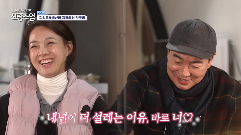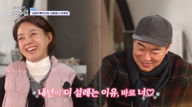 [OSEN=박하영기자]‘신랑수업’김일우가박선영과부부로오해받자미소를숨기지못했다.25일방송된채널A예능‘요즘남자라이프신랑수업’(이하‘신랑수업’)에서는김일우가박선영을강릉으로초대해잊지못할크리스마스전야제를함께하는하루가그려졌다.이날김일우는강릉을찾은박선영에커플키링을흔들며반겼다.박선영은“오랜만이다.오빠애마”라며김일우차에익숙한모습을보였고,멘토군단들은“차에몇번태워준적있냐”라고물었다.김일우는“제가몇번과거의선영을집까지바래다준적도있다”라고밝했다.심지어김일우는박선영을위해데이트코스를사전답사까지했다고밝혀모두를놀라게했다.첫번째코스는강릉의한강이라불리는남대천을가로지르는‘월화교’로향했다.차에서내린후박선영은“차와.문열다가차에치이면안된다”라고했고,김일우는어깨동무를하며에스코트해설렘을안겼다.월화교를걷을후두사람은소원적는물고기에소원을적어나갔다.특히김일우는“SY내인생의로또”라며대놓고플러팅을해모두를놀라게했다.반면박선영은“만약1등당첨이되면,강릉에주택을공동명의로사자.거기를카페를뭘하든관리를하면되잖아”라고의미심장하게말해눈길을끌었다.이에김일우는“너무좋은일인데?좋은생각인데?”라고웃었다.이후두사람은시장을찾았다.장을보던중한상인이두사람을향해“두분부부세요?”라고물었다.부부오해에김일우는미소를숨기지못했고,박선영은“오빠어떻게책임지려고하냐”라고민망해했다.또다른상인도부부라고오해하자김일우는제작진과의인터뷰에서“진짜그렇게보이나?제가봐도선영씨와같이서있을때부부라고오해할만도하다싶은생각이들었다”라고고백했다.한편,김일우는박선영을위한마지막코스로글램핑을준비했다.술을못하는박선영을위해뱅쇼를선보인김일우.이에박선영은“왜장가를못갔지?”라며의문을품었다.김일우는“와인따는거어딨냐”고말을돌렸고,김종민은“저런타이밍이살면서많지않다”고탄식했다.그런가운데박선영은김일우를위해선글라스부터장갑,목도리까지깜짝선물을해김일우에게감동을안겼다.훈훈한분위기속김일우는연말계획을묻는박선영에“나는굉장히계획형이다.먼미래는아니지만한달정도계획을세운다.2024년목표가유연해지자야.드라마오랜만에할때도내가연기를딱두글자다.유연하게하자”라고답했다.박선영은“오빠요즘에되게좋다.유연한사고.어떻게보면더편해졌다.처음에는오빠가괜히벽을보고선느낌이라면지금은아니다.교육을잘받은것같다.선생님들한테”라고말했다.김일우는부끄럽다고했지만박선영은“예전처럼부끄럼도많이안탄다”라고격려했다.이에김일우는“표현도자꾸하다보니는다”라고했고,박선영은“저도(연애)세포가죽었다.오빠만죽어있는게아니라나도죽었다.죽은세포살려야지”라며의미심장하게말했다.특히박선영은“오빠는2024년내가제일잘한거뭐라고생각하냐”라고물었고,김일우는“너만난거.너랑만나서이순간에같이있는거기억에남는다”라며1초도고민하지않고답해설렘을안겼다./mint1023/@osen.co.kr[사진]‘요즘남자라이프신랑수업’방송화면캡처Copyright©OSEN.무단전재및재배포금지.