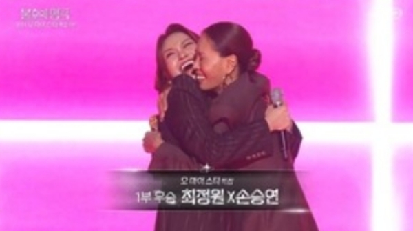 사진=KBS2TV'불후의명곡'[스포츠한국김현희기자]'불후의명곡'에서최정원X손승연이최종우승을차지했다.21일방송된KBS2'불후의명곡'686회는2024오마이스타'특집이펼쳐졌다.이날무대에는이소정XKik5o(키코),김범룡X녹색지대,육중완밴드X정승제,김장훈x은가은,최정원X손승연차례로무대에올라명곡에새숨을불어넣었다.이소정,키코가가장먼저뽑힌공의주인공이었다.박선주의귀로'를선택한이들은노래가가가진슬픔과감성을자신만의목소리로표현하며또다른색깔을냈다.같은듯다른두사람의보컬색으로더욱이색적인무드가뿜어져나왔다.20대보컬인두사람의놀라운가창력과'귀로'에대한재해석이돋보이는무대였다.서로를배려하고의지하며어우러진무대가마음을따뜻하게했다.김범룡X녹색지대가두번째로호명됐다.김영배의남자답게사는법'을선택한이들은그야말로수컷냄새가물씬나는오프닝으로눈과귀를사로잡았다.마이크스탠드앞에선이들은30년관록의화음을뽐내며매력을발산했다.3인3색의보컬이조화롭게어우러지며시너지가폭발했다.세남자의카리스마무대에이어스탠드를활용한엔딩포즈가보는이들의미소를자아냈다.첫번째대결은이소정,키코가김범룡,녹색지대의무대를이기고1승을거뒀다.세번째로육중완밴드X정승제가부르는김건모'서울의달'이었다.육중완특유의재치가묻어있는보컬로정승제의긴장을풀었다.이에힘입은정승제는발군의가창력과찰떡음색을뽐내며제몫을톡톡히해냈다.무대중간중간육중완밴드만의재치가묻어난퍼포먼스가재기발랄한매력을더했다.육중완과정승제의보컬시너지가돋보이며이색적인무드를선사했다.김장훈X은가은이김원준의'쇼'(Show)로네번째바통을받았다.은가은이깨끗하고시우너한가창력으로무대를열였고,김장훈이등장해본격적인쇼가시작됐다.김장훈은그야말로'쇼의대가'다운에너지와열정으로무대를채웠다.무대중간김장훈의히트곡'나는남자다'가삽입되며즐거움도선사했다.무대말미부채춤퍼포먼스가펼쳐지며한국적요소로완성도를더했다.기세좋은반전무대였다.김장훈,은가은이육중완밴드,정승제보다많은표를얻어승자석을차지했다.사진=KBS2TV'불후의명곡'최정원X손승연이피날레를장식했다.패티김'그대내친구여'로무대에오른이들은괴물보컬의면모를여과없이뿜어내며소절을주고받았다.여기에단단한내공에서뿜어나오는섬세한감정표현이듣는이들의감동을폭발하게만들었다.이들은특별한무대장치없이서로를바라보는눈빛과감성만으로한편의뮤지컬을완성,진한여운을남기며모두의눈가를촉촉하게했다.최정원,손승연은불이켜지자서로를껴안으며최종우승의기쁨을만끽했다.또한,이들은김장훈이전한트로피를받고행복하게미소지었다.한편'불후의명곡'은매주토요일오후6시5분KBS2TV에서방송된다.스포츠한국김현희기자[email protected]©스포츠한국.무단전재및재배포금지.