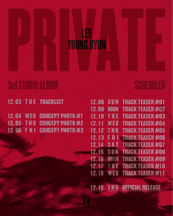 에이치오이엔티(HOENT)가수이영현의새정규앨범스케줄러가오픈됐다.2일0시공식채널을통해오픈된이영현의정규3집‘PRIVATE’앨범스케줄러는강렬한붉은배경속타오르는불꽃의그림자가보다강렬하게돌아올이영현의매력을예고하며시선을사로잡았다.이와함께프로모션일정도공개됐다.이영현은3일트랙리스트공개를시작으로세개의콘셉트포토,정규3집을장식하는11개트랙티저를각각공개하고오는19일오후6시앨범발매까지숨가쁜일정을이어간다.특히이영현은최근유튜브채널딩고뮤직‘킬링보이스’콘텐츠를통해이번앨범수록곡일부를선공개하며정규3집에대한기대감을높인바있다.이영현의정규3집앨범‘PRIVATE’는지난2012년발매한정규1집‘PLUS+’,2016년‘여향’에이어약8년만에발매되는정규앨범으로장르를넘나드는보컬리스트이영현의진면목과더욱성장한음악적세계를만나볼수있다.한편이영현의정규3집앨범‘PRIVATE’는오는19일오후6시각종온라인음원사이트를통해발매된다.[MBN스타박소진기자[email protected]]<CopyrightⓒMBN(www.mbn.co.kr)무단전재및재배포금지>Copyright©MBN.무단전재,재배포및AI학습이용금지.