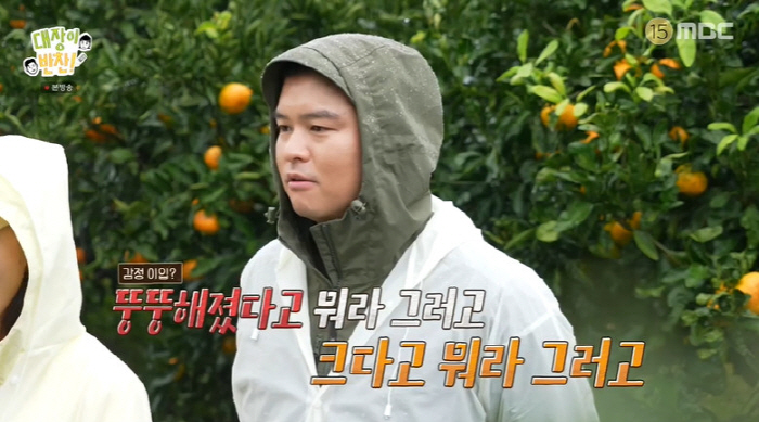 [스포츠조선닷컴이우주기자]'대장이반찬'이장우가속상한마음을드러냈다.1일방송된MBC예능프로그램'대장이반찬'에서는하지원,윤두준과제주로반찬여정을떠난이장우,김대호의모습이담겼다.다음날아침,김대호는일찍일어나가볍게운동을하는부지런한모습을보여줬다.김대호는"규칙적으로먹어야살이안찐다"며아침식사를제안했고이장우는삼치미역어죽을만들겠다고했다.이에김대호는"내가삼치를잡겠다.(이장우가)전날어깨를하도써서오른쪽으로못돌아눕더라"라고밝혔다.이에하지원은"15년째아침마다직접즙을짜서레몬주스를마신다.레몬커피를만들겠다"고밝혔다.하지원표레몬커피로하루를연세사람.김대호는"향이너무좋다"며감탄했다.만족스러운식사를마친후다시일을하러간네사람.네사람이향한곳은이날의재료인제주감귤밭이었다."비오는날에도일할수있다"고당당하게열의를드러낸이들이지만사장님은"비오는날은일하기조건이안좋다.모든식물이나과일들이비오면수분을빨아들여서맛이싱거워진다.비오는날에는수확을멈춘다"고밝혔다.비오는날엔농부들이다른일을한다고.감귤밭에서다양한종류들의귤을본네사람.귤크기별로선호도가다르다는사장님의말에이장우는"뚱뚱하다고뭐라그러고크다고뭐라그러고"라고감정이입했다[email protected]©스포츠조선.무단전재및재배포금지.