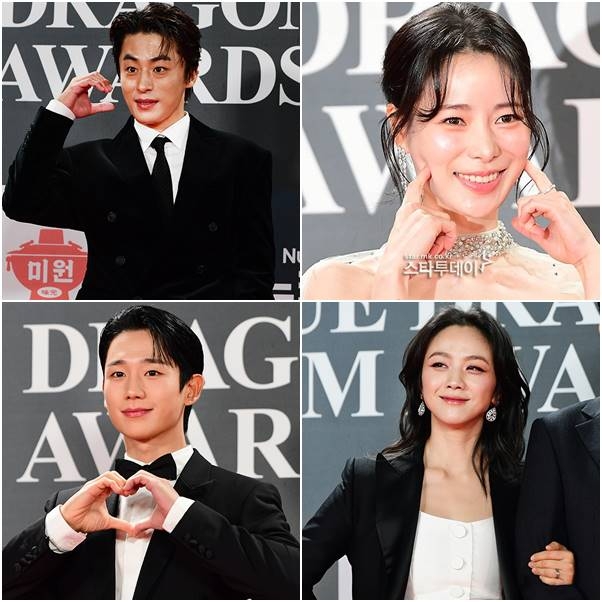 구교환,임지연,정해인,탕웨이.사진|강영국기자배우구교환임지연정해인탕웨이가인기스타상을받았다.구교환은29일오후8시30분서울영등포구여의도KBS홀에서열린제45회청룡영화상시상식에서“3년전에상을받고연기를열심히할수있는원동력이됐고다시오고싶었다.욕심생겼는데,상받아서더기쁘다.더열심히연기하겠다”고말했다.임지연은“인기많은사람에게주는상이라너무감사하다.어떤상보다행복하다”고미소지었다.정해인은“어떤상보다행복하다.입이귀에걸린다.이상을받기위해정말열심히힘써준팬들에게감사하다.베테랑2가받는인기상이라고생각하겠다.열심히하겠다”고이야기했다.탕웨이는“이름들었을때정신이나갔다.번역기를켜놓고있었는데,누가받을까궁금했다”면서남편인김태용감독에게감사를전했다.지난해사회자자리에서물러난‘청룡의여인’김혜수의뒤를이어올해청룡영화상은배우이제훈한지민이진행을맡았다.최우수작품상부문에는‘베테랑2’‘서울의봄’‘파묘’‘패스트라이브즈’‘핸섬가이즈’가후보에올랐다.Copyright©스타투데이.무단전재,재배포및AI학습이용금지