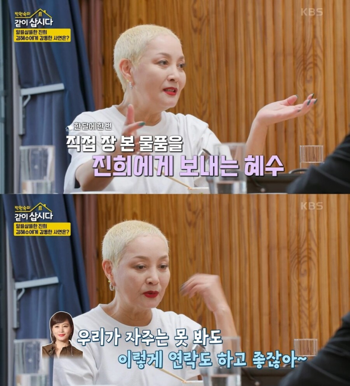 예능'박원숙의같이삽시다'(제공:KBS2)지난26일방송된KBS2'박원숙의같이삽시다'에출연배우홍진희가'30년인연'김혜수에대한고마움을토로했다.KBS드라마지성이면감천',영화'써니'이후연기자로서는휴식기를보내고있는홍진희는"10년째백수로지내고있다"면서"난역할은주책맞은배역은자주맡았지만원래성격은내성적이다.현재는젊을때번돈을정말절약하면서살아가고있다"고솔직히고백했다.이어홍진희는한달에한번장보기를해다주는김혜수의정성을공개했다.이날게스트로출연한홍진희는"혜수가3년동안한달에한번씩장을봐줘서보내준다.한두번도아니고미안해서'그러지말라'라고했다.그랬더니혜수가'이렇게해야한달에한번이라도안부묻지'라고하더라"고김혜수의남다른마음씀씀이에대해소개했다.홍진희는"내가한번은팔을다쳤는데로봇청소기보내줬다"라고울컥했고,혜은이는"그마음이착하다"라고함께감탄했다.한편두사람은1998년종영한드라마'짝'에서함께호흡을맞춘것을인연으로우정을나누고있다.송미희기자[email protected]뉴스연예팀기사제보[email protected]©bnt뉴스.무단전재,재배포및AI데이터활용금지