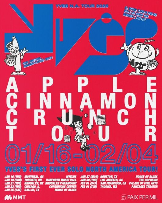 [OSEN=선미경기자]그룹이달의소녀출신이브(Yves)가데뷔첫북미투어를진행한다.이브는지난26일공식SNS를통해첫번째북미투어'2025YVESAPPLECINNAMONCRUNCHTOURINNORTHAMERICA'(이하'APPLECINNAMONCRUNCHTOUR')의포스터를게재하며,단독투어개최소식을전했다.강렬한레드톤의포스터에는투어일정과함께이브가직접그린본인의캐릭터,이브의상징인사과,그리고투어타이틀을의미하는시나몬크런치그림이그려져있어눈길을끈다.이브는오는2025년1월16일몬트리올을시작으로1월19일토론토,1월21일브루클린,1월23일시카고,1월25일댈러스,1월27일휴스턴,1월30일로스앤젤레스,2월1일샌프란시스코,2월4일타코마등북미9개지역에서투어를펼친다.'APPLECINNAMONCRUNCHTOUR'는이브가데뷔후처음으로여는단독투어다.투어타이틀처럼이브는달콤함과매콤함이어우러진독특한매력을보여준다는각오다.이브는최근발매한두번째EP'IDid'의수록곡을포함해솔로아티스트로서이브의역량을보여줄수있는특별한무대들로첫북미투어를다채롭고풍성하게채울계획이다.북미투어에앞서이브는오는12월4일독일베를린을시작으로유럽5개지역에서유럽투어를개최,본격글로벌행보에박차를가한다./[email protected][사진]파익스퍼밀제공.Copyright©OSEN.무단전재및재배포금지.